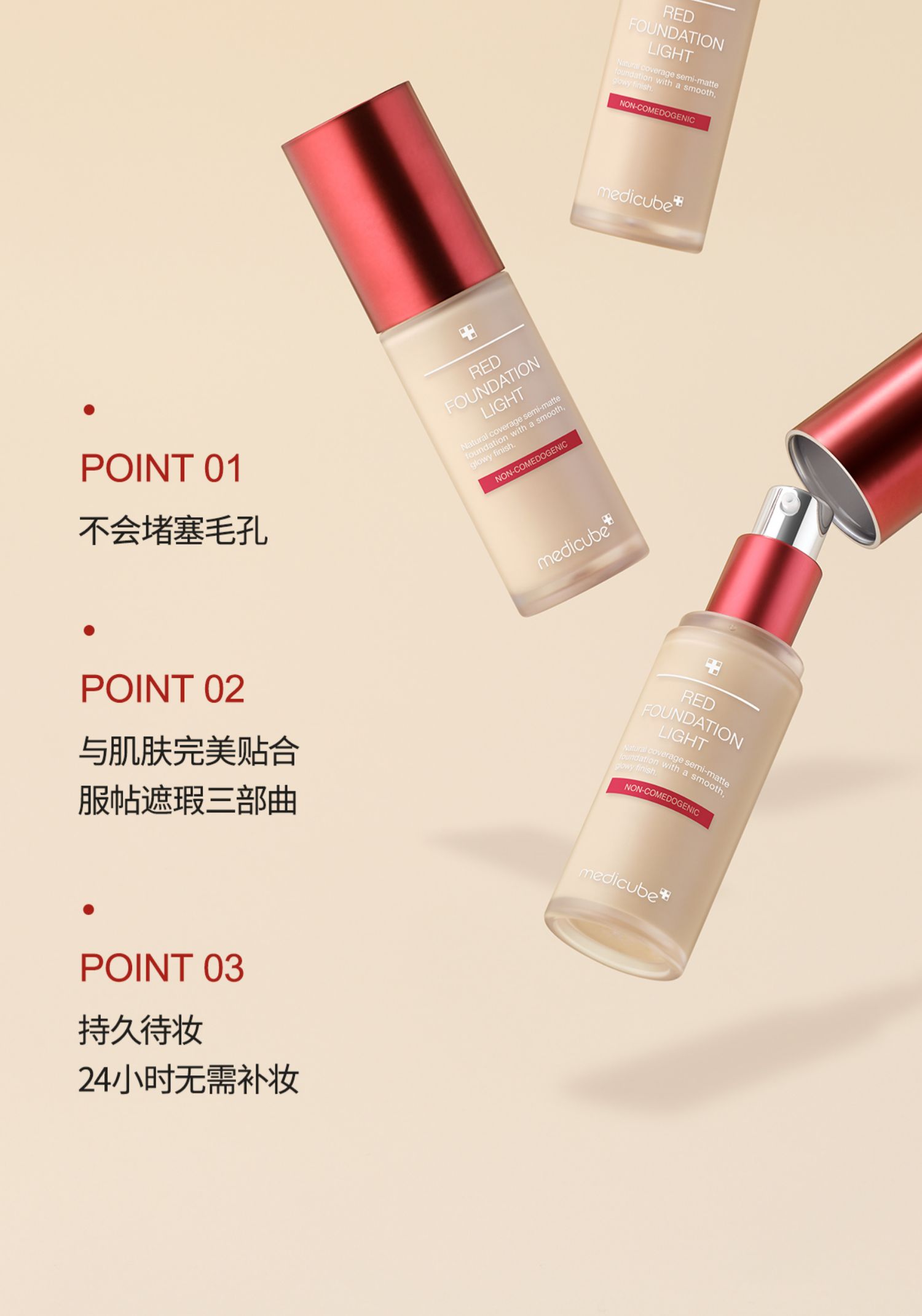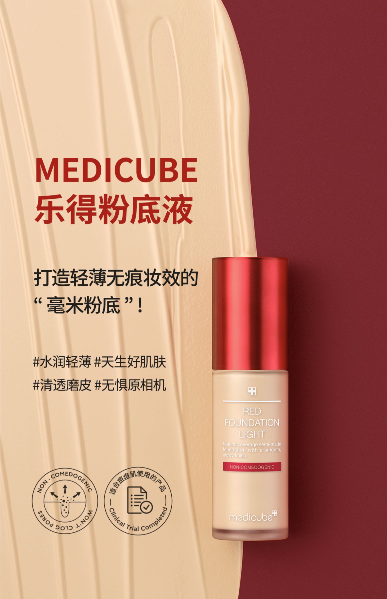 【Medicube乐得粉底液】打造轻薄无痕妆效的“毫米粉底”!水润轻薄,天生好肌肤;清透磨皮,无惧原相机。不会堵塞毛孔,与肌肤**贴合,服帖遮瑕三部曲,持久待妆。【包邮】