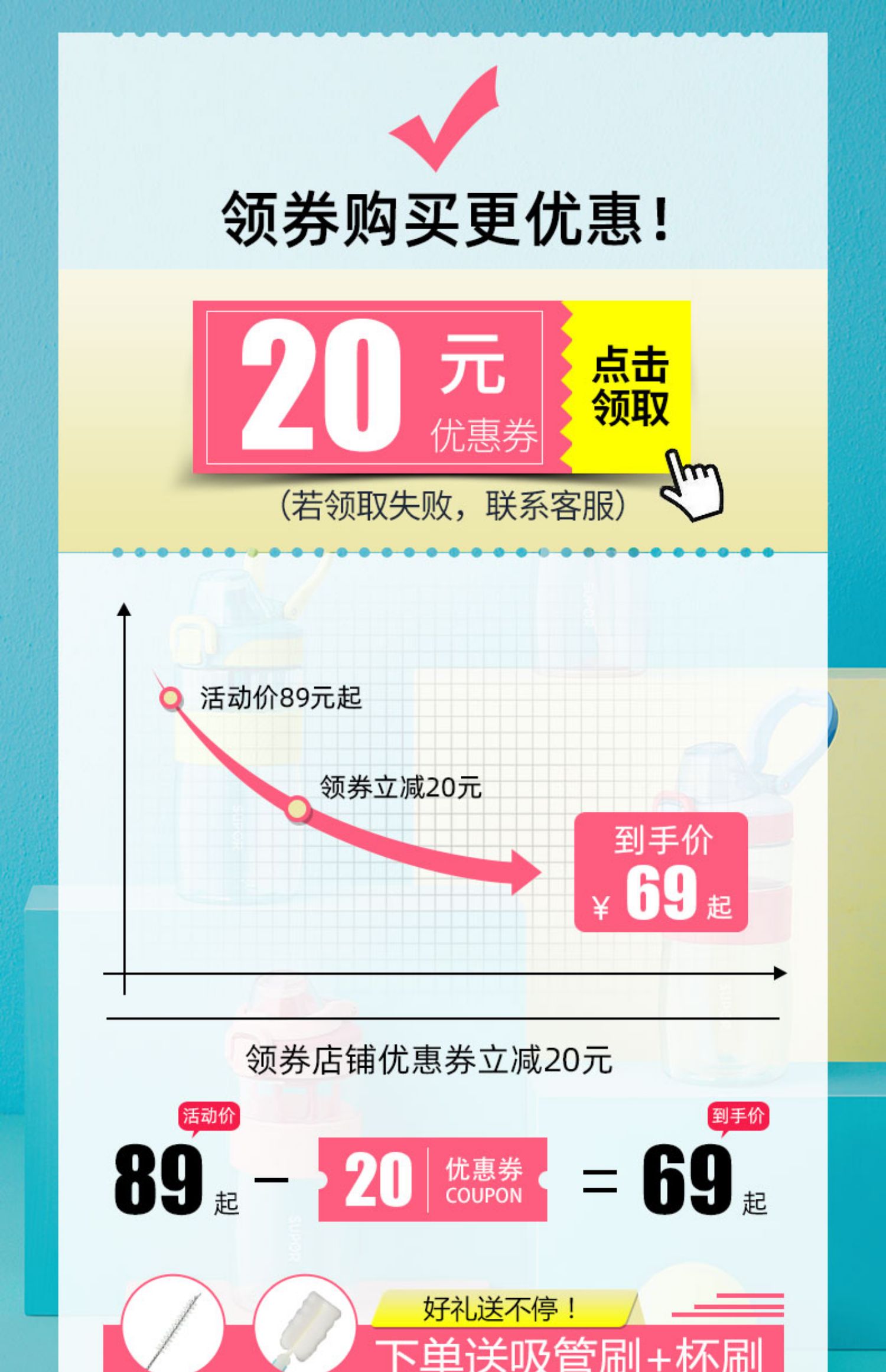 【苏泊尔】Tritan婴儿奶瓶材质,一键开合,耐冷耐热,小巧便携,倒置不漏水,防摔耐高温!轻巧易携带,超高品质保证,使用安全!