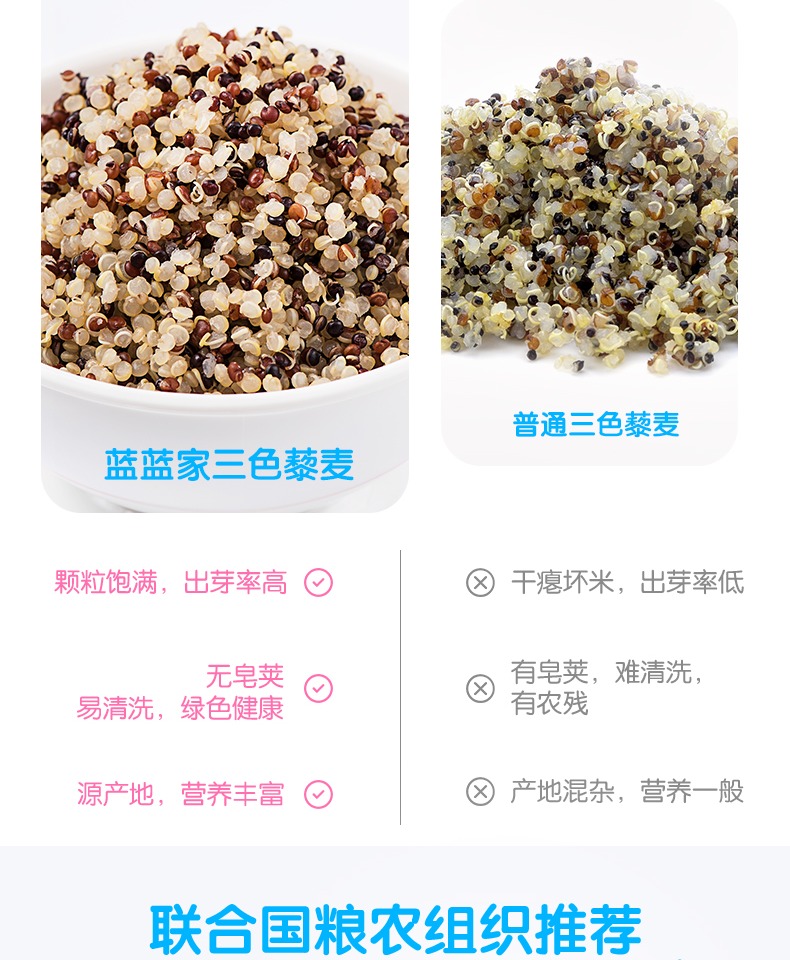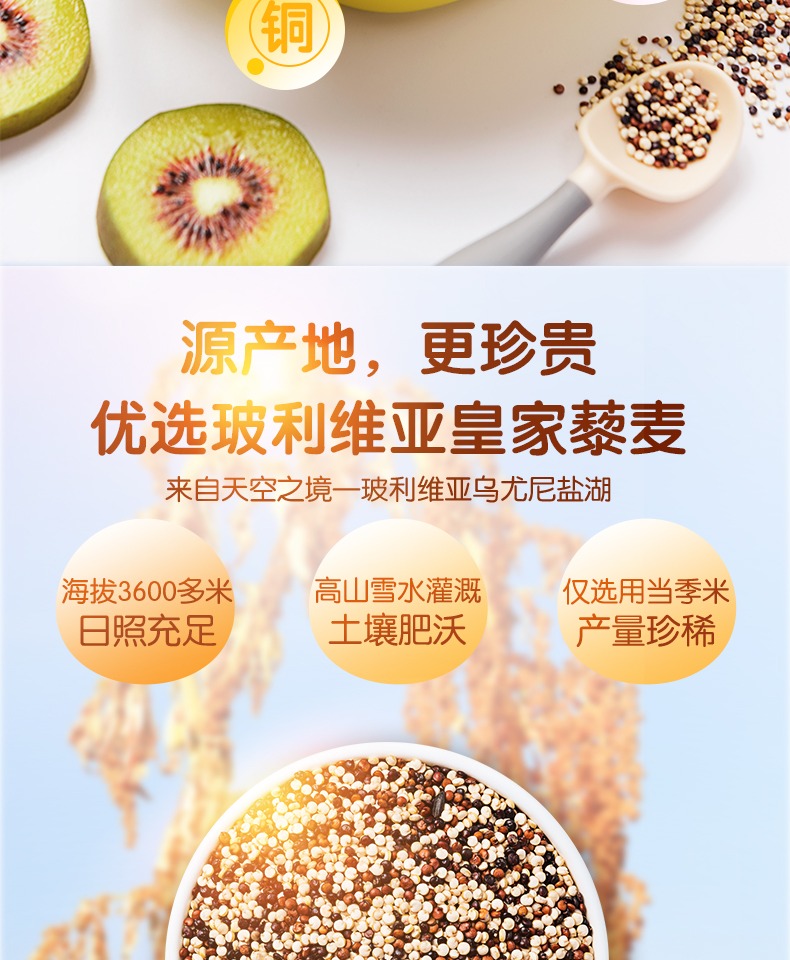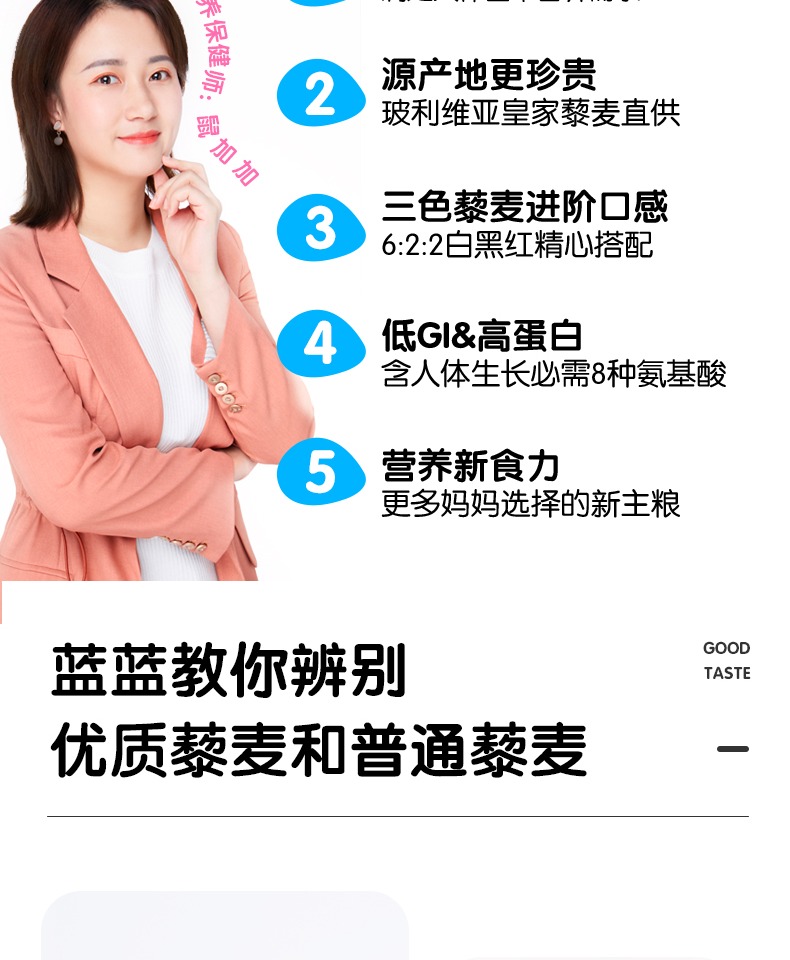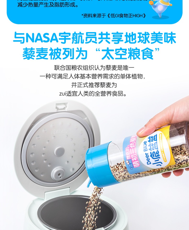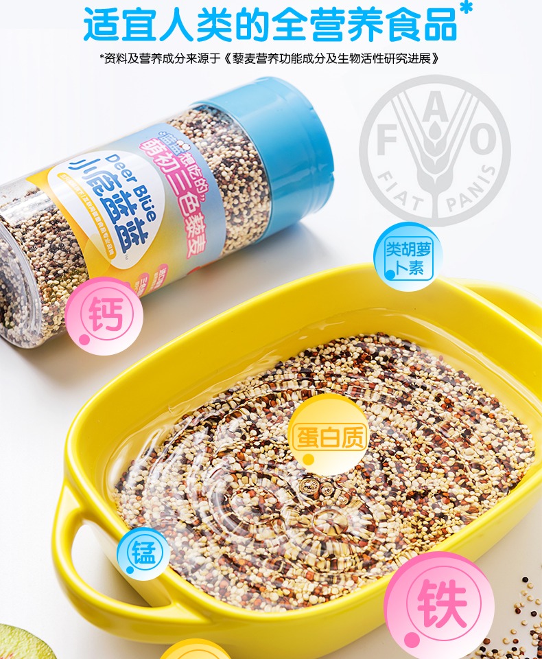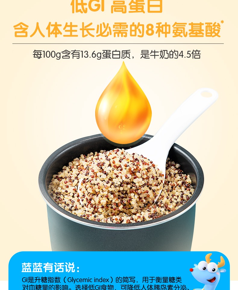 三只松鼠旗下品牌-小鹿蓝蓝,高蛋白三色藜麦,玻利维亚皇家直供,全面谷物营养低GI%26;高蛋白,三色混合口感升级