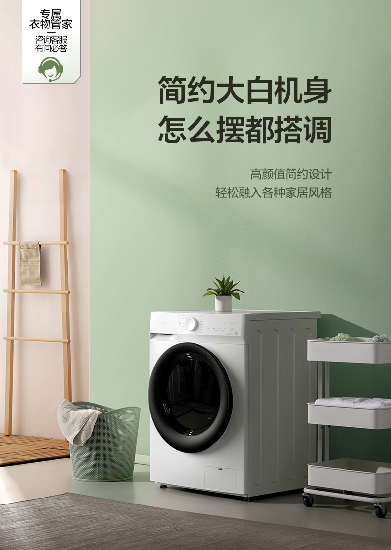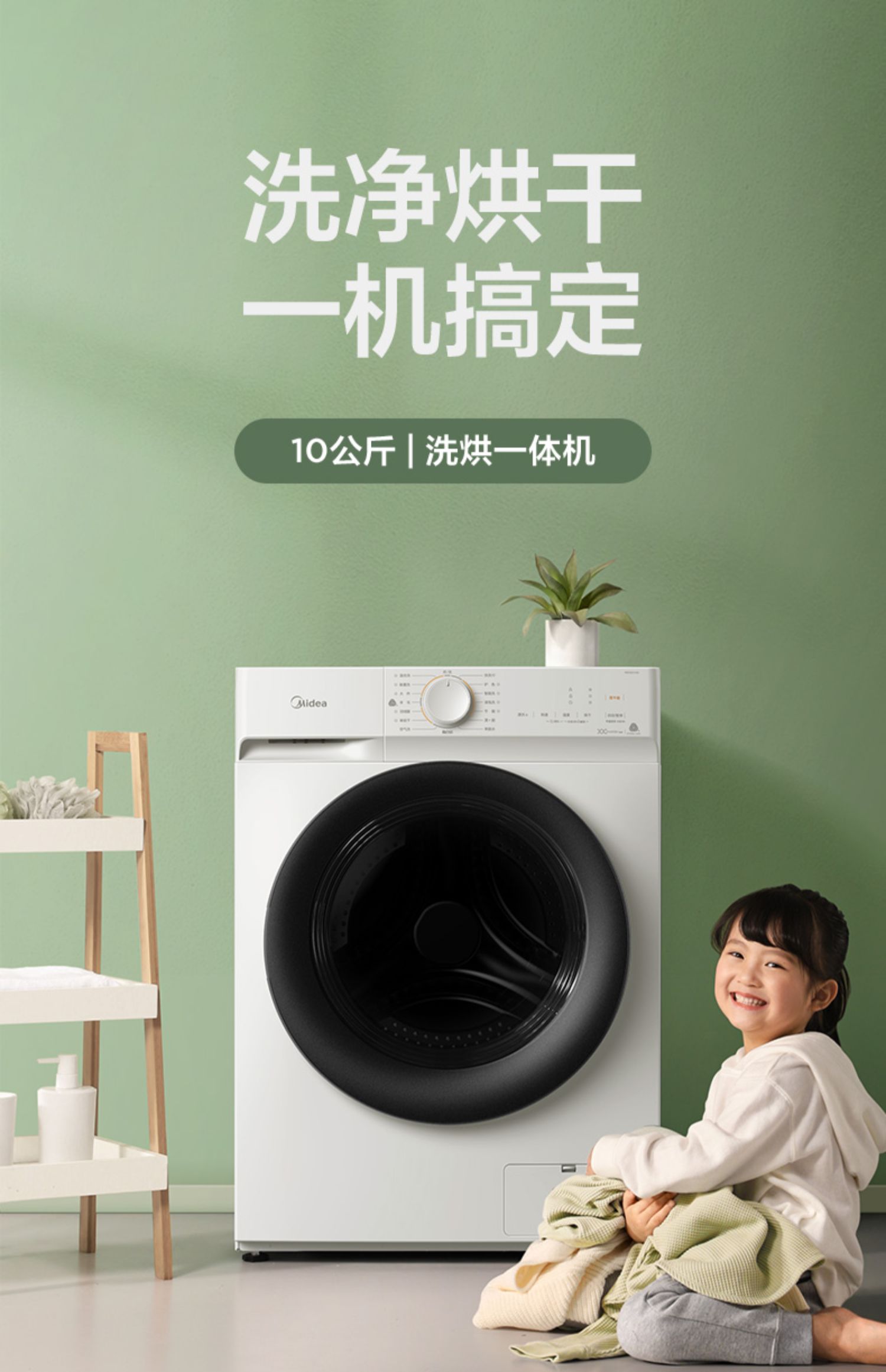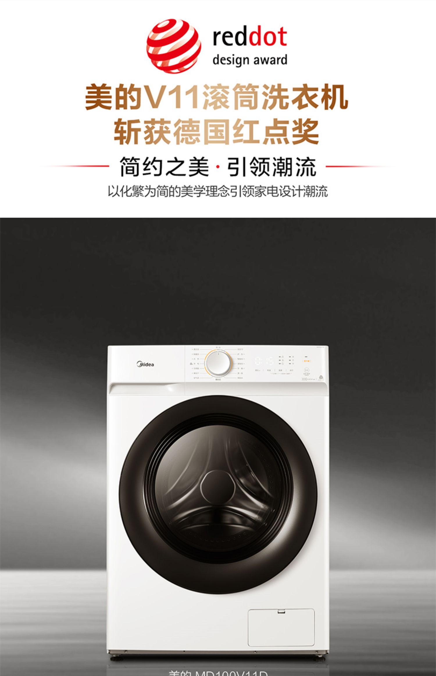 美的V11滚筒洗烘一体机洗衣机,斩获德国红点奖,简约之美,引领潮流,以化繁为简的美学理念引领家电设计潮流,洗衣新趋势,洗净烘干,一步到位