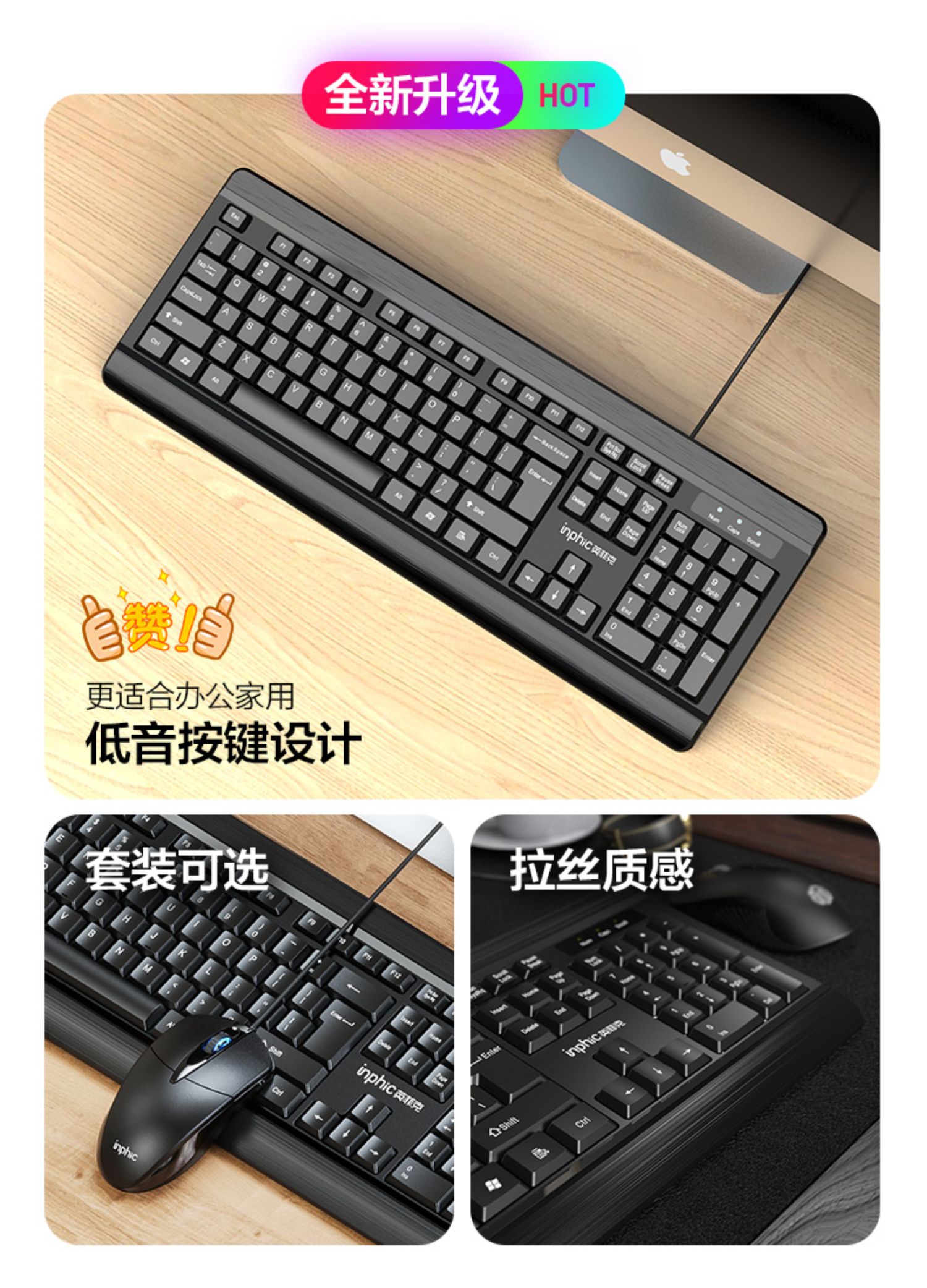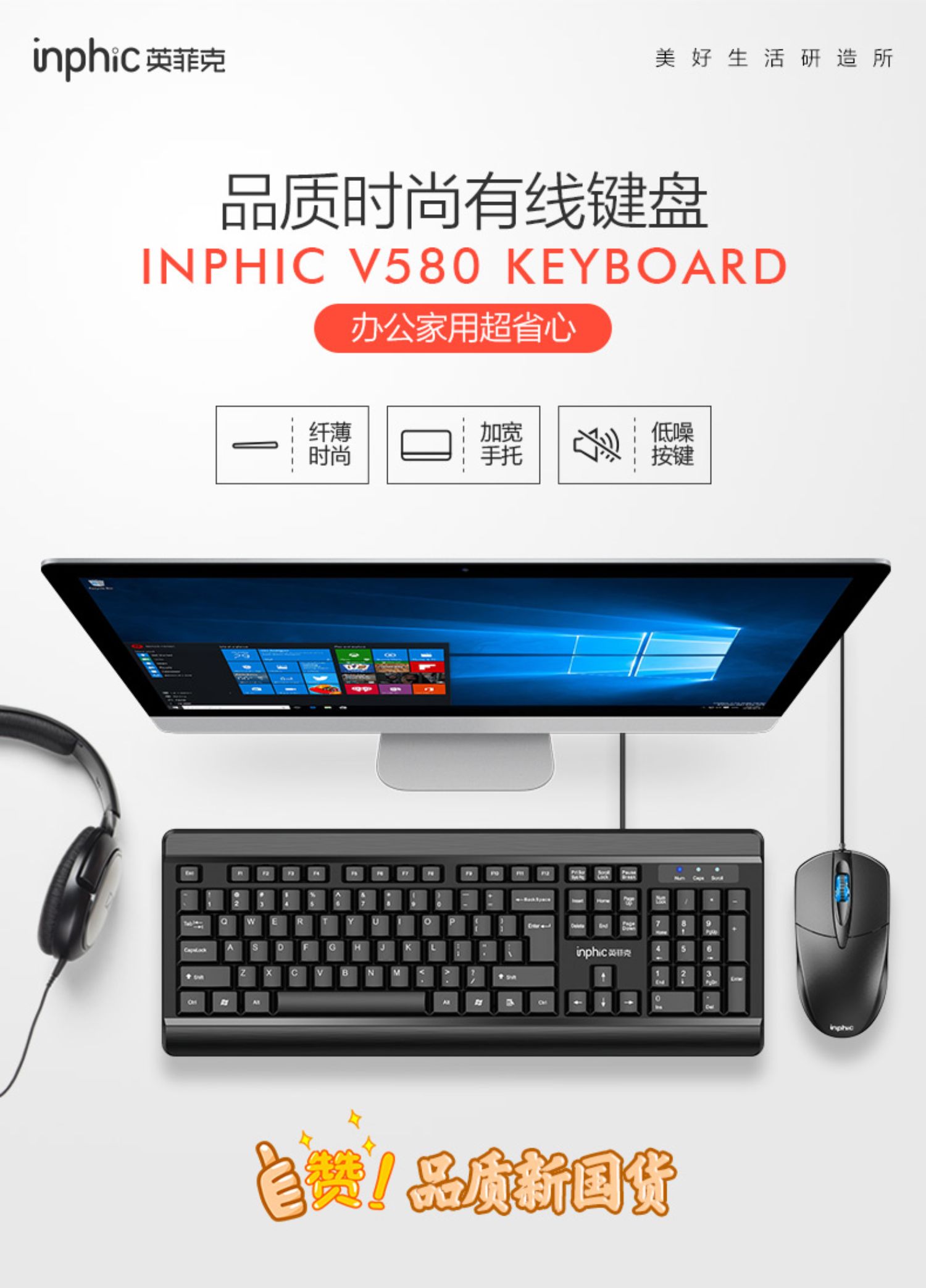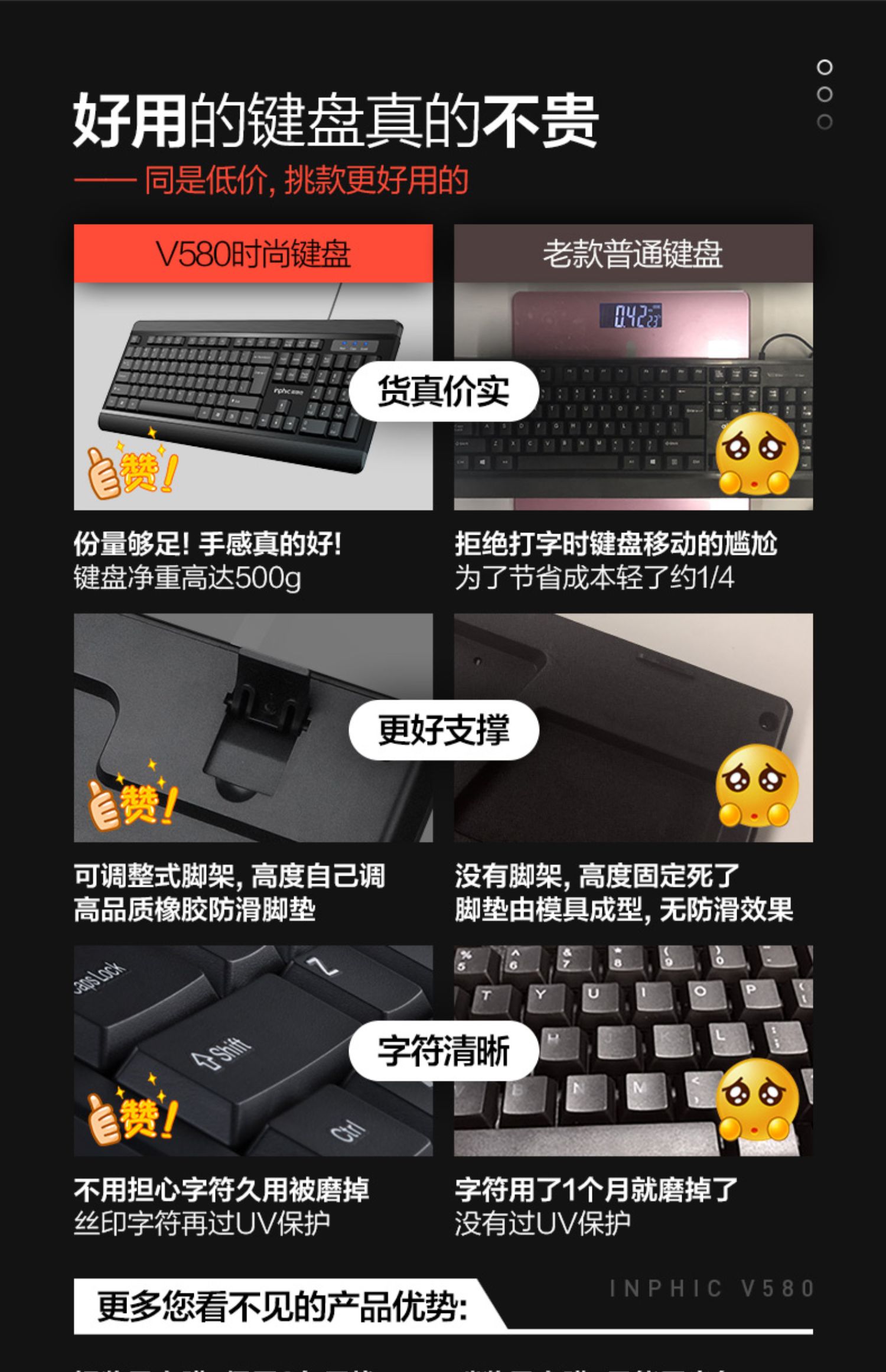 首页>数码家电>英菲克v580键盘鼠标套装有线台式电脑家用机械手感USB外接笔记本防水静音无声办公专用打字外设电竞游戏键鼠
