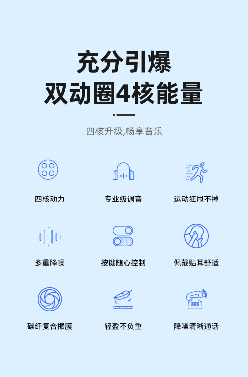 千元级9D音效,超强智能降噪,开机自动配对,一键操作,方便实用,传输稳定,通话顺畅!大容量充电仓,可为手机充电,也可当做手机支架,用途广泛!