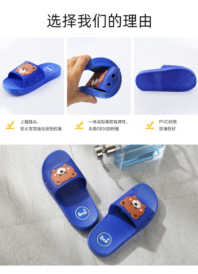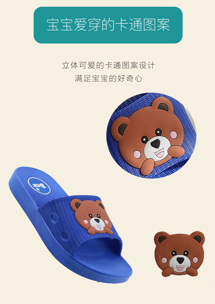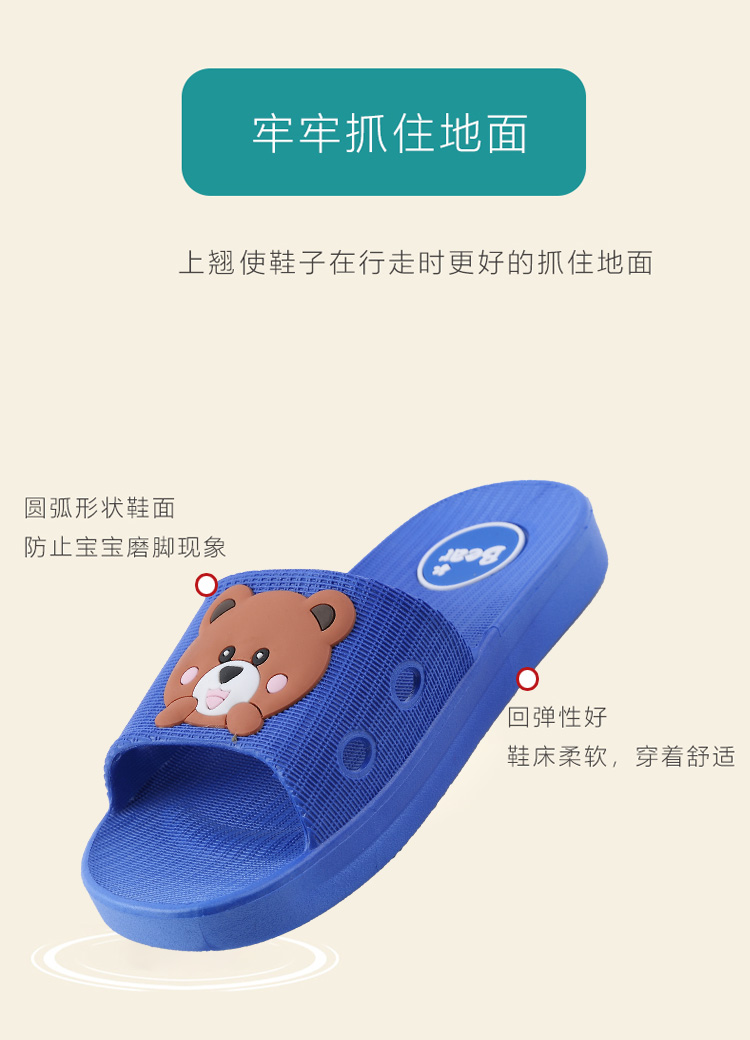 夏季宝宝必备的软底拖鞋,鞋头上翘设计,避免宝宝受到撞击,一体成型柔软有弹性,立体卡通图案,满足宝宝的童心,防滑鞋底,浴室穿也不怕滑到哦~