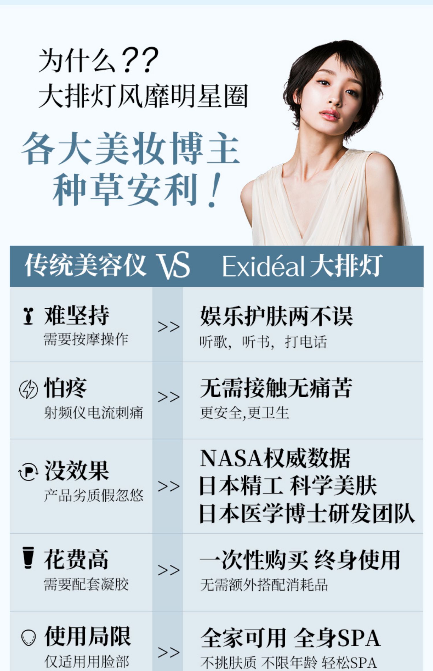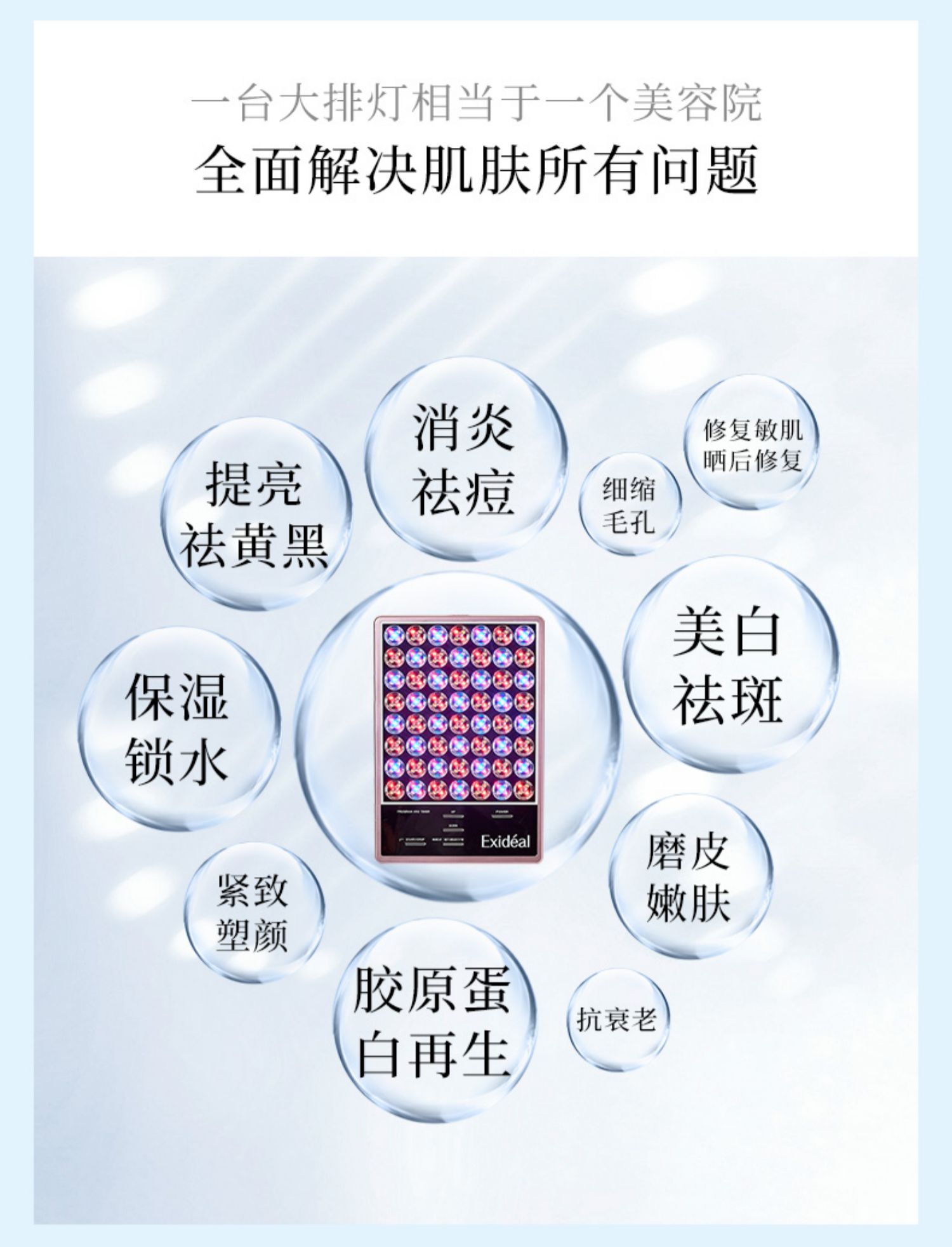 【Exideal海外旗舰店】明星同款LED美容仪,无紫外线,安全放心,恢复皮肤状态,美白提亮肤色,您的私人美容院,美肌逆龄新科技!