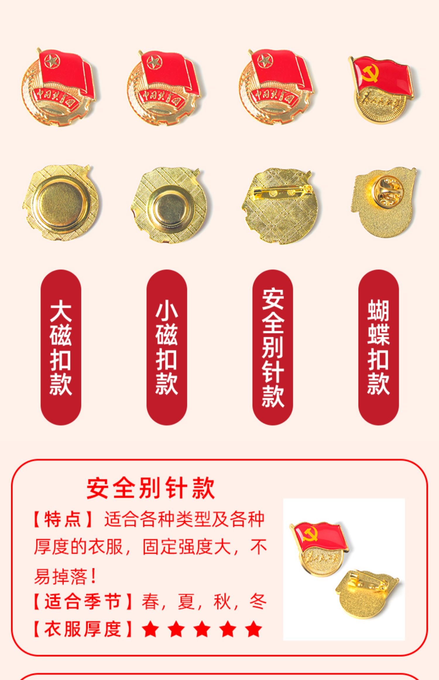 2020年标准党徽胸针,加厚制作,高光镀金,抛光处理,不易褪色,多种佩戴方式供你选择!支持企业单位团体定做!限时抢购!!
