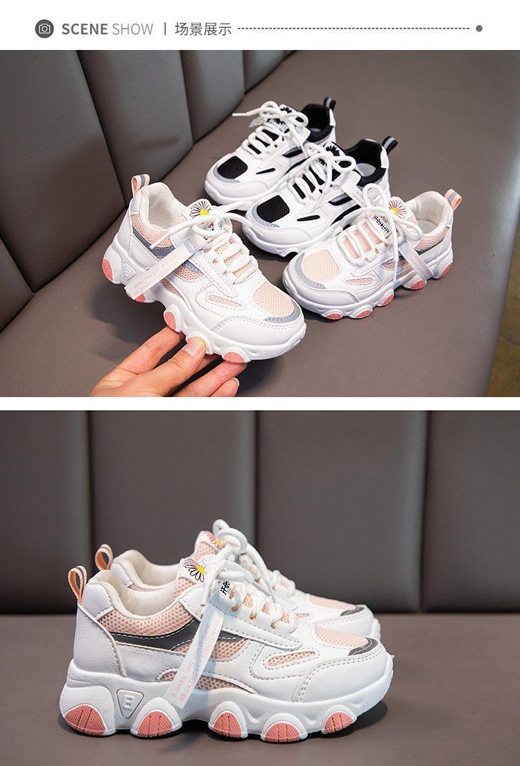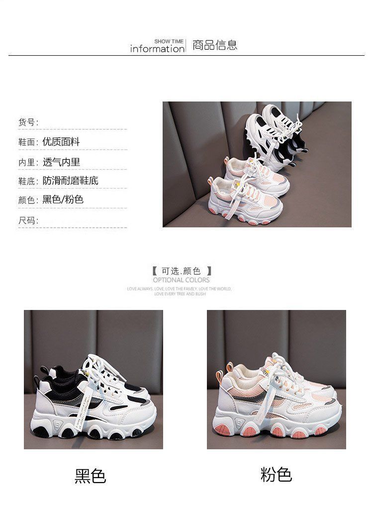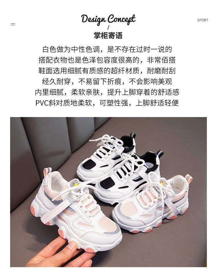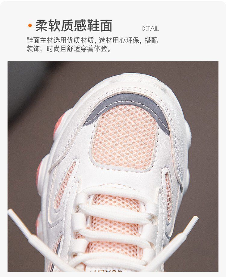 女童白色网面运动鞋春秋,2021新款大童防水女孩小学生儿童老爹鞋潮