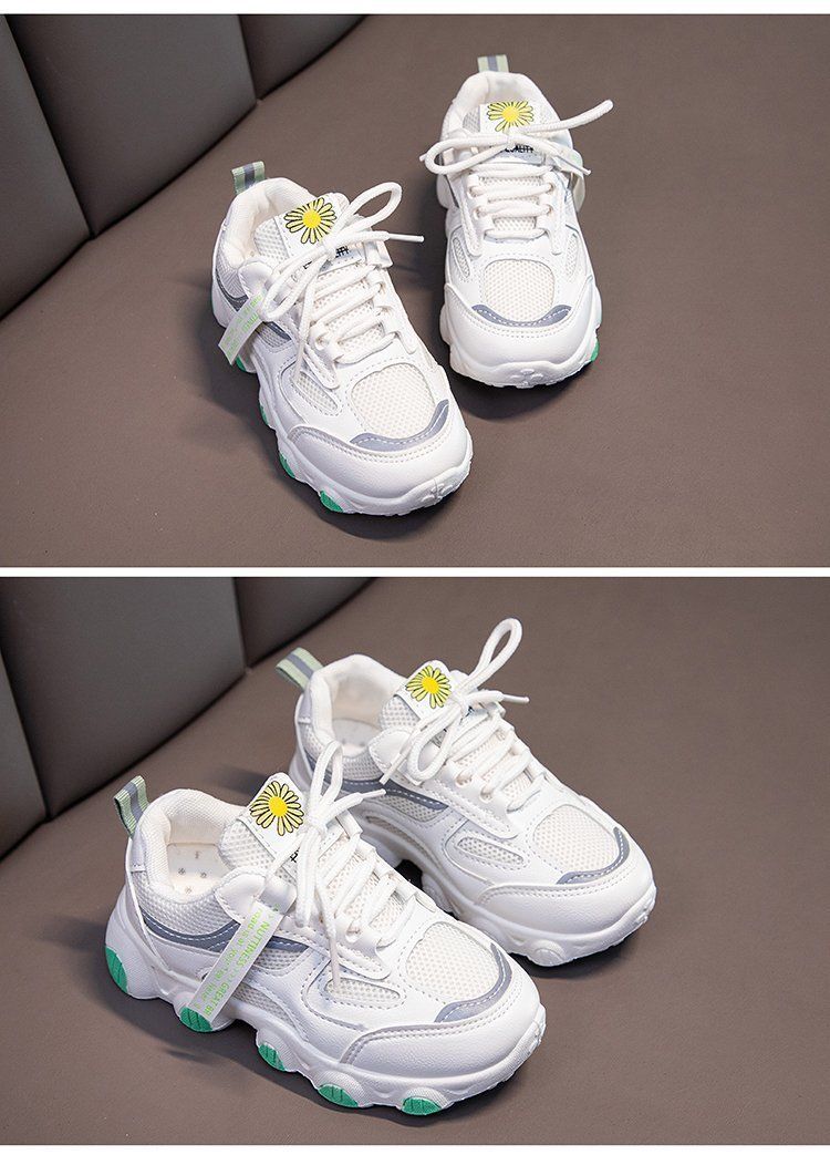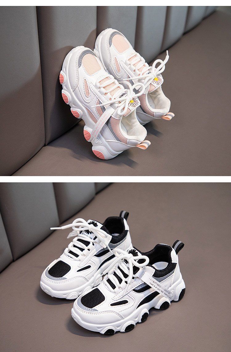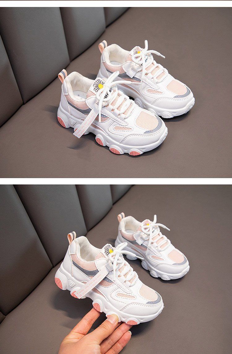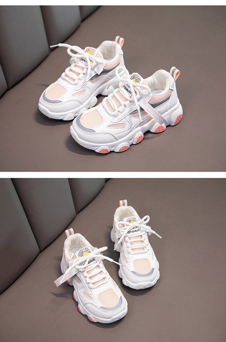 女童白色网面运动鞋春秋,2021新款大童防水女孩小学生儿童老爹鞋潮