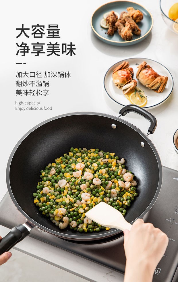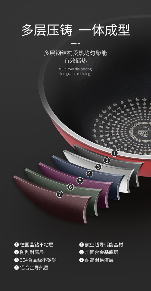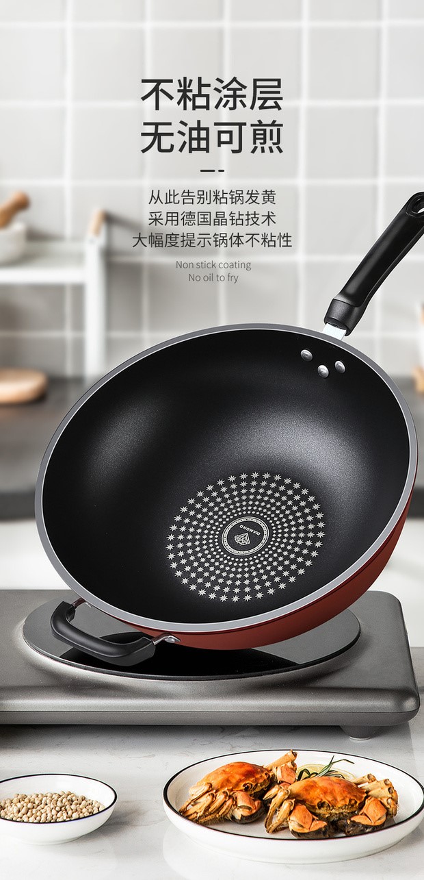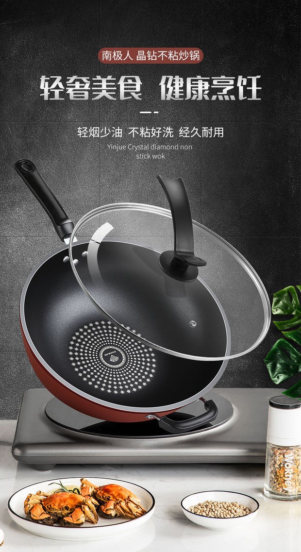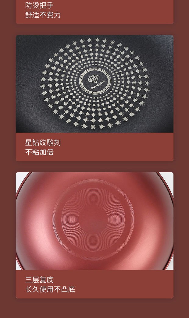 人晶钻不粘炒锅,德国晶钻技术 大幅提升锅体不粘性,易粘食材 通通不粘,从此告别粘锅发黄 多层钢结构,受热均匀聚能。加大口径 翻炒不溢锅,美味轻松享,省时又省心 不花冤枉钱,下厨更轻松!【赠送运费险