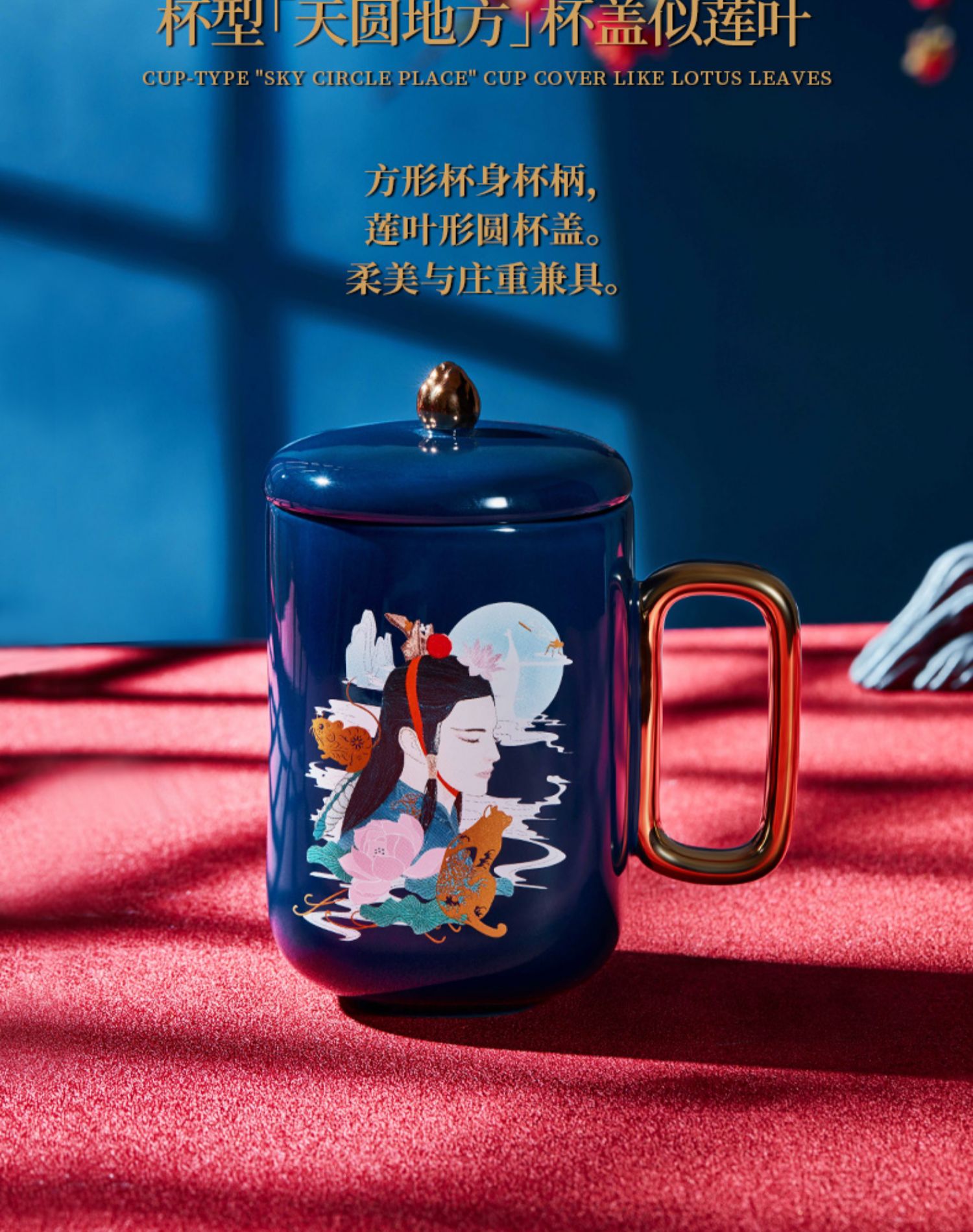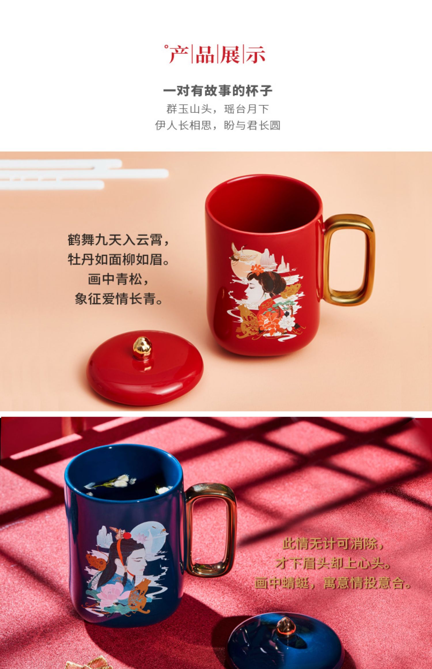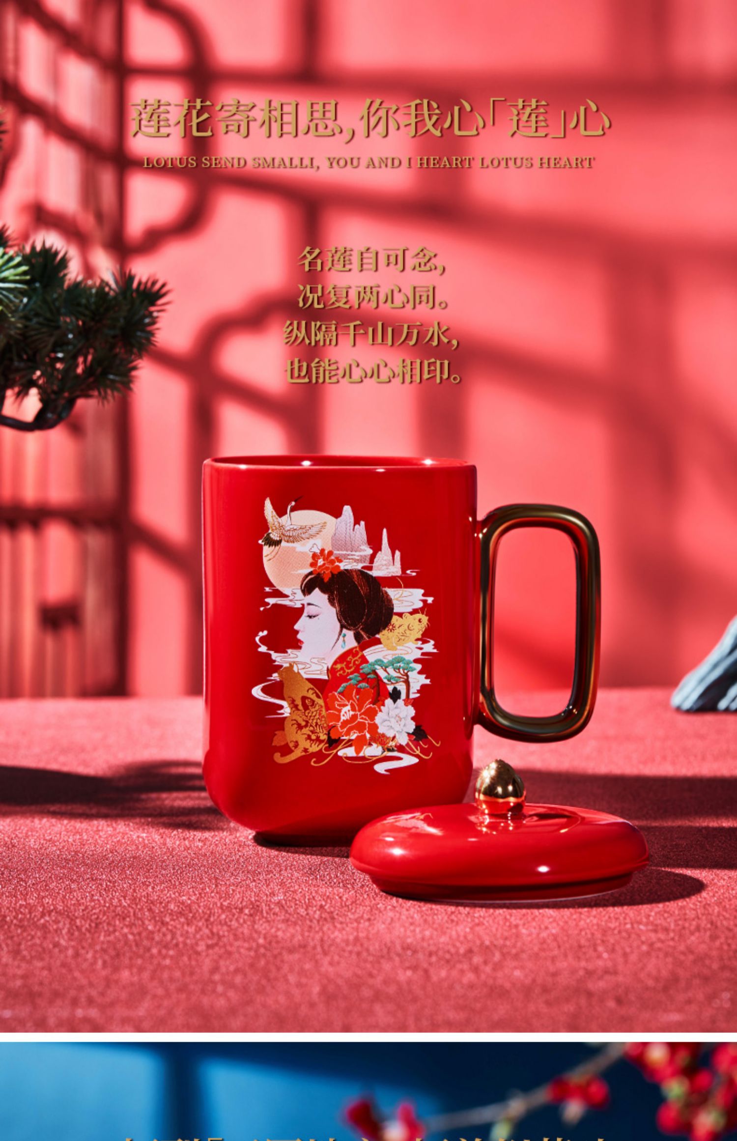 【设计师手绘款】大牌共禾京品!带盖只要29!!创意陶瓷情侣马克杯,典雅国风搭配精致釉彩,浮雕质感手工贴花,大气鎏金杯柄,金色莲花杯盖寄相思,寓意心有灵犀,双色可选,速度抢!