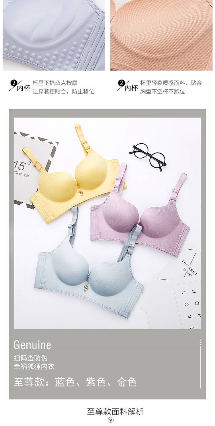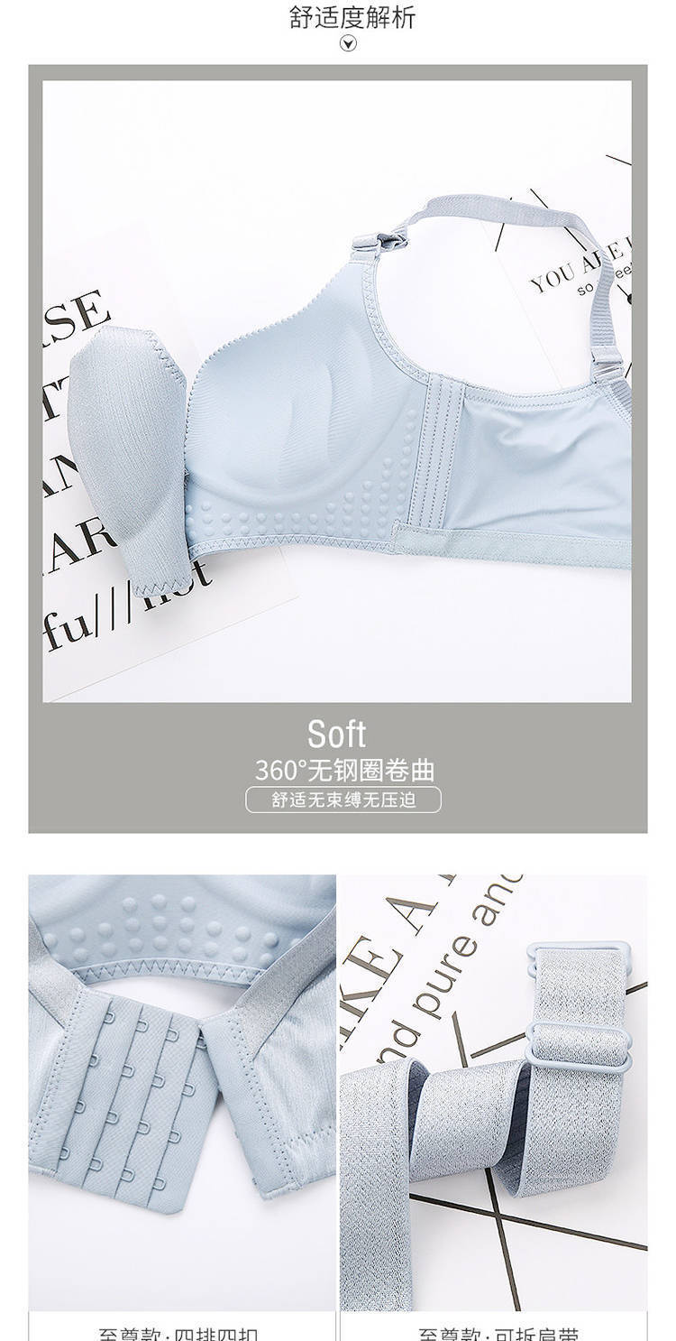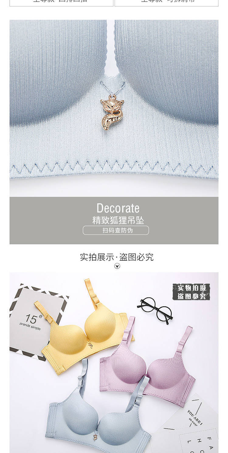 贴身舒适的无钢圈文胸!高颜值,面料柔软~无钢圈聚拢设计,穿上前聚拢防下滑,后有无痕美背效果~
