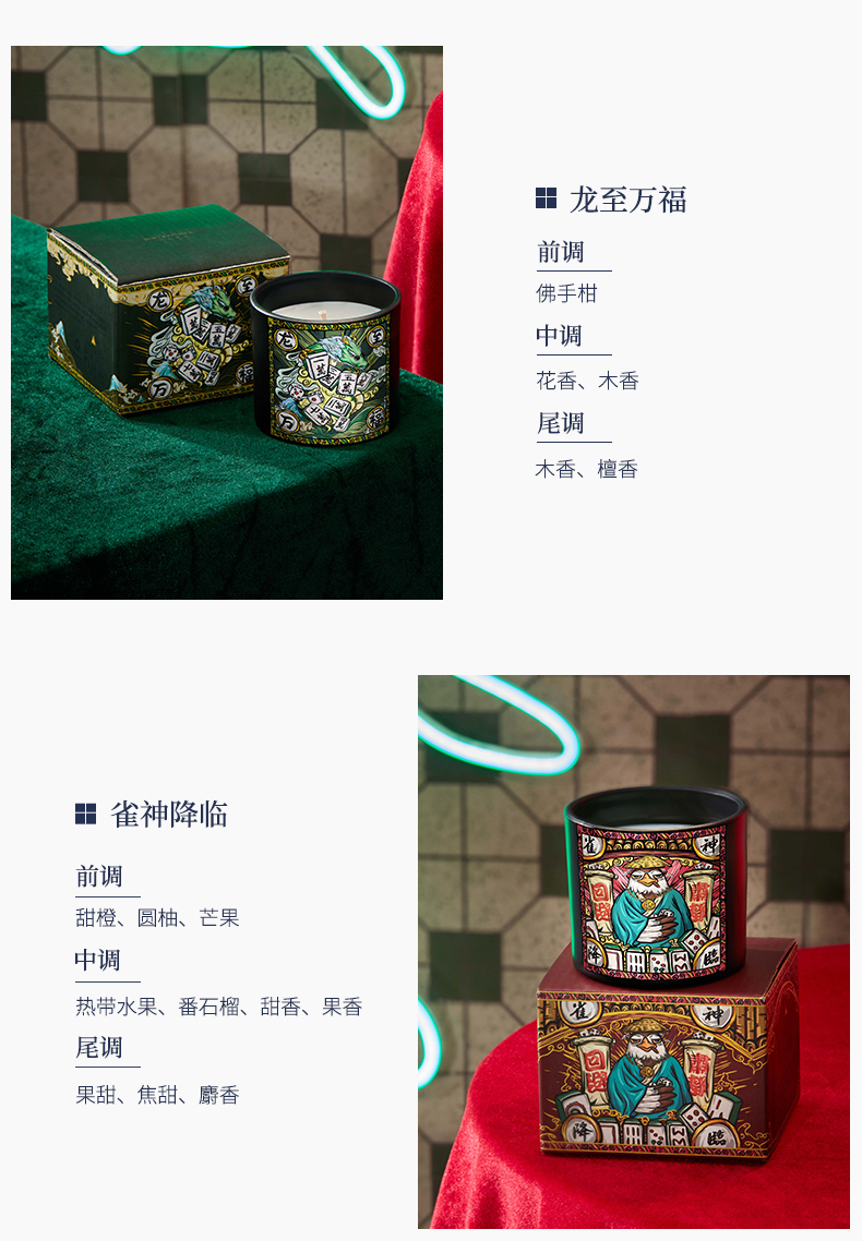 【大牌共禾京品】国潮麻将主题香薰蜡烛礼盒,花果香融合草本花香,清新典雅,净化空气,缓解紧张情绪,装点家居必选~!