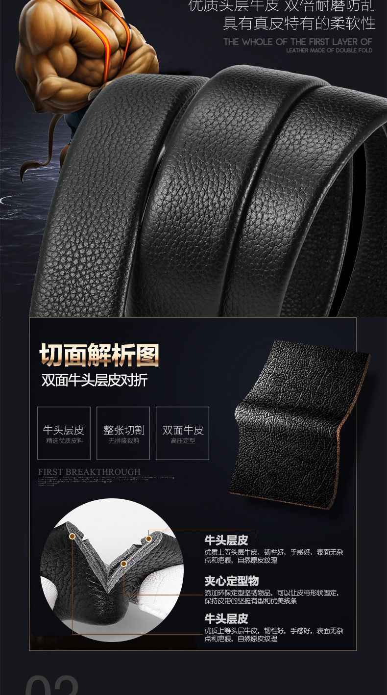 【卡帝乐】男士头层牛皮腰带皮带,整张头层牛皮真皮切割,双面对折不断裂不脱皮!激光电镀扣头,不生锈更有档次!非一般柔韧结实!【赠运险费】