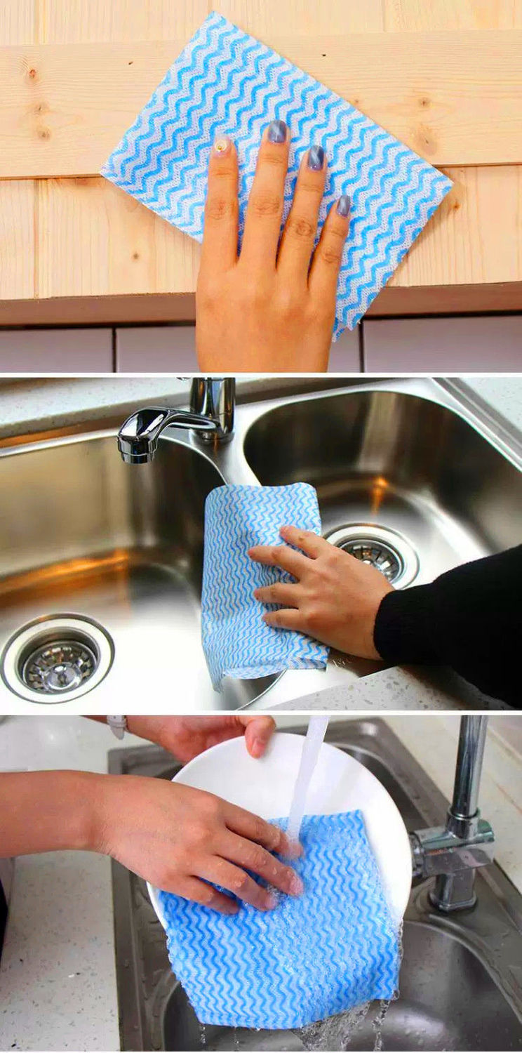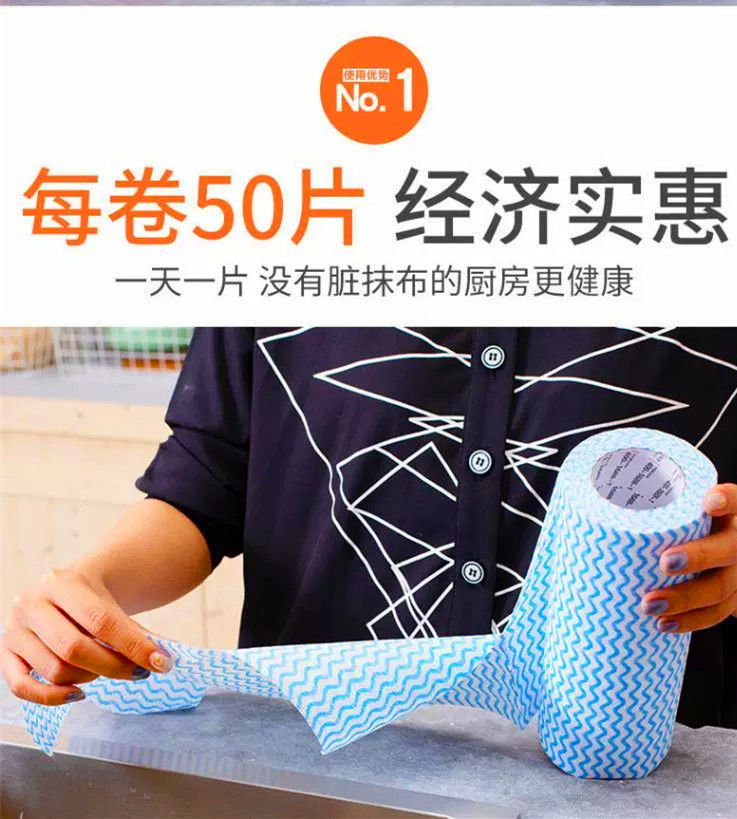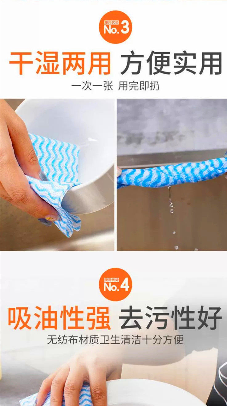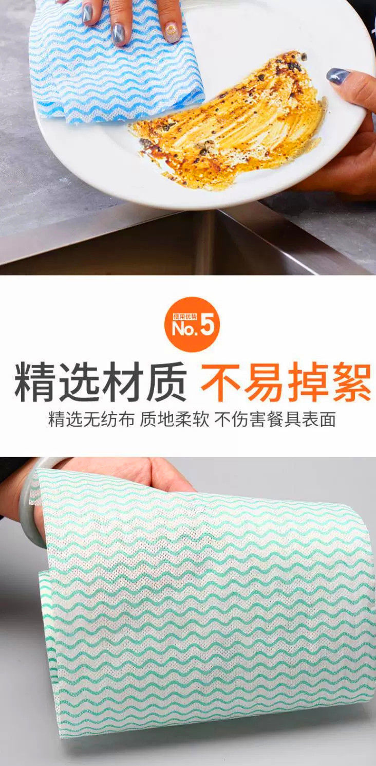 厨房清洁无纺布,即撕即用,不沾油,吸水量足,不易生菌,不掉色,天然植物纤维,一冲即净,强力去污,一次性抹布,可反复使用!清洁吸油