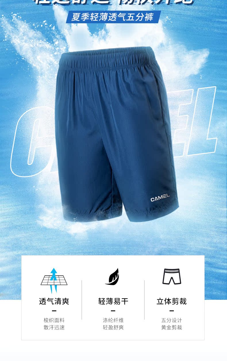 【骆驼大牌品质】夏季轻薄透气五分裤,轻薄快干,透气清爽,无束缚,款式休闲运动,四色可选~超级百搭,夏季潮男必备之选!【赠运费险】