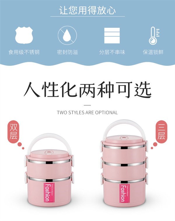 高颜值有格调~食品级不锈钢,密封保温强,中空隔热防烫,分层设计,美食不串味~时刻温暖你的胃~