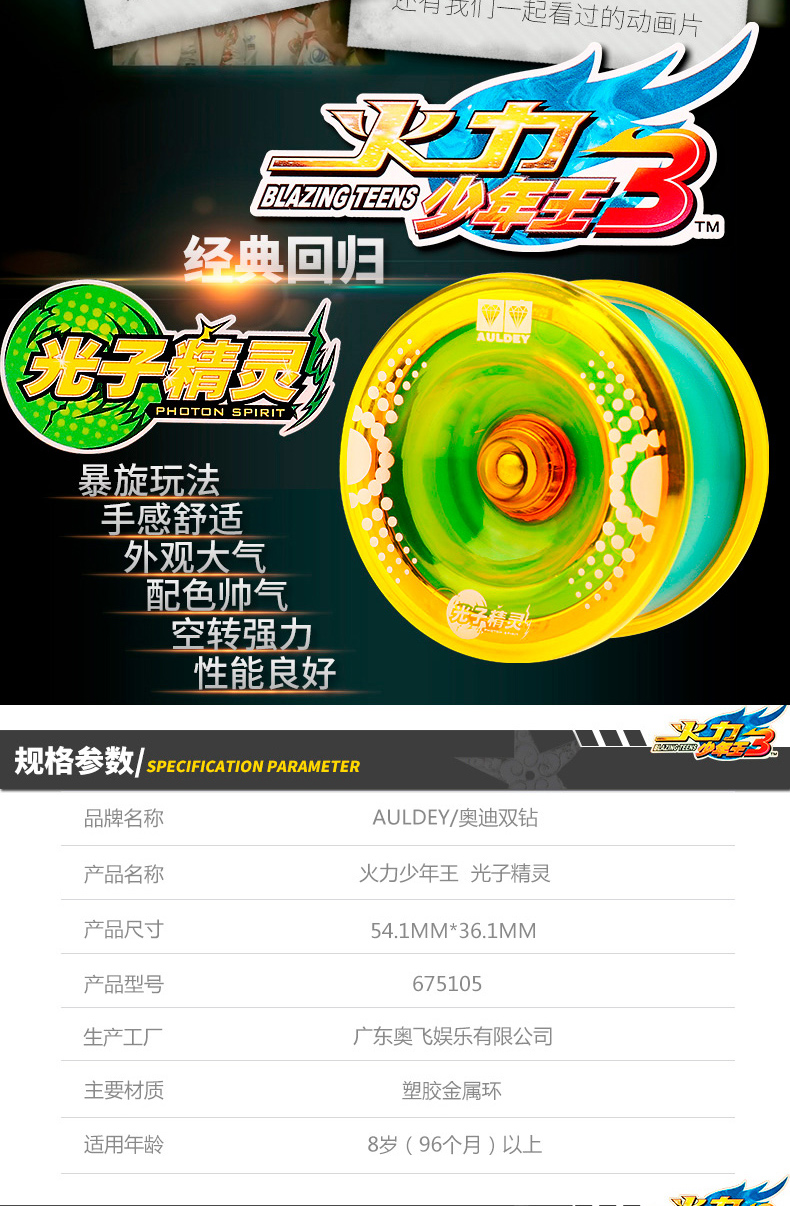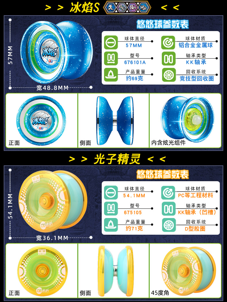 到手价17元【奥迪双钻】金属溜溜球光子精灵冰焰S,简约造型,做工精细耐磨,全新轴承设计,空转时间更长,爆旋系统,玩出任何悠悠花式。【赠运险费】
