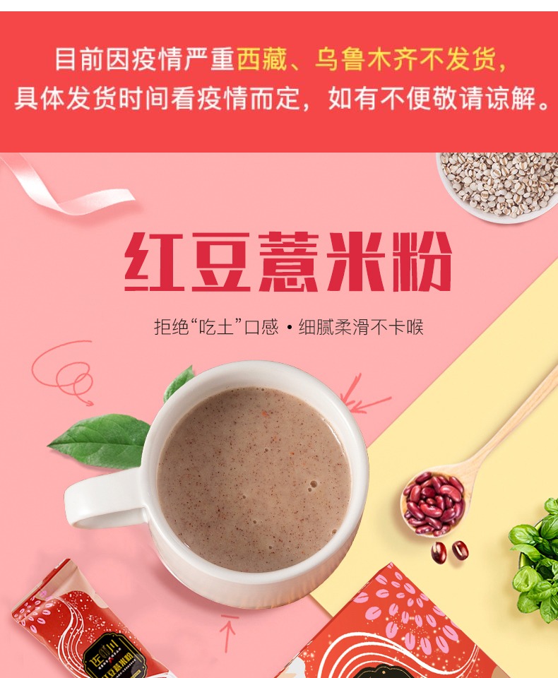 【即冲即饮~美味营养~】身体有湿气吃它准没错!轻松喝走湿气!细腻柔滑不卡喉,口感香醇不添加,没有任何焦味!每日一杯红豆薏米粉,健康从这里开始。