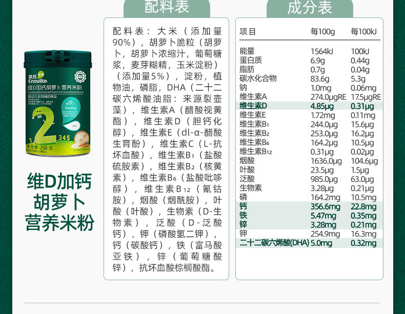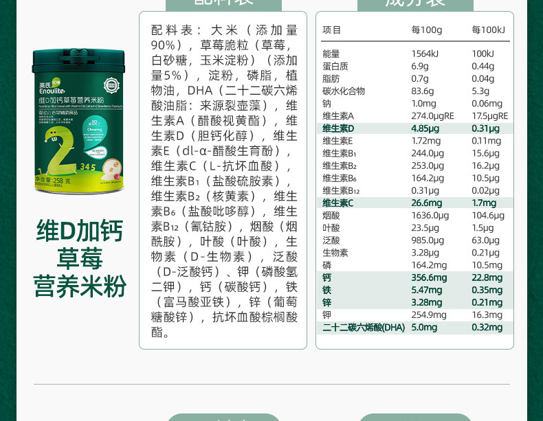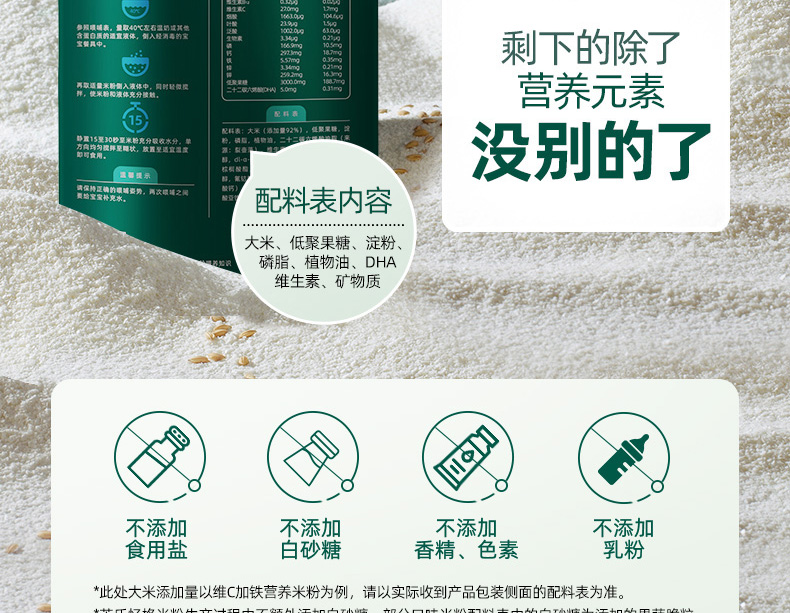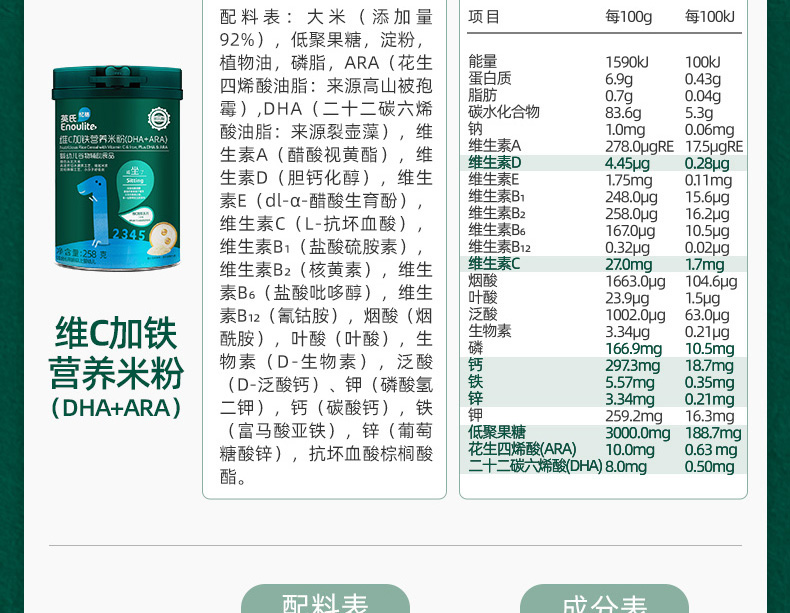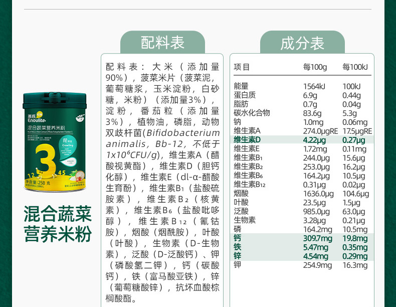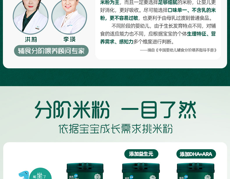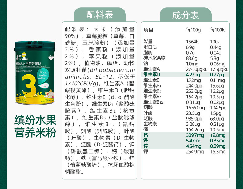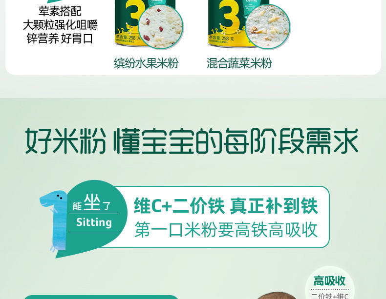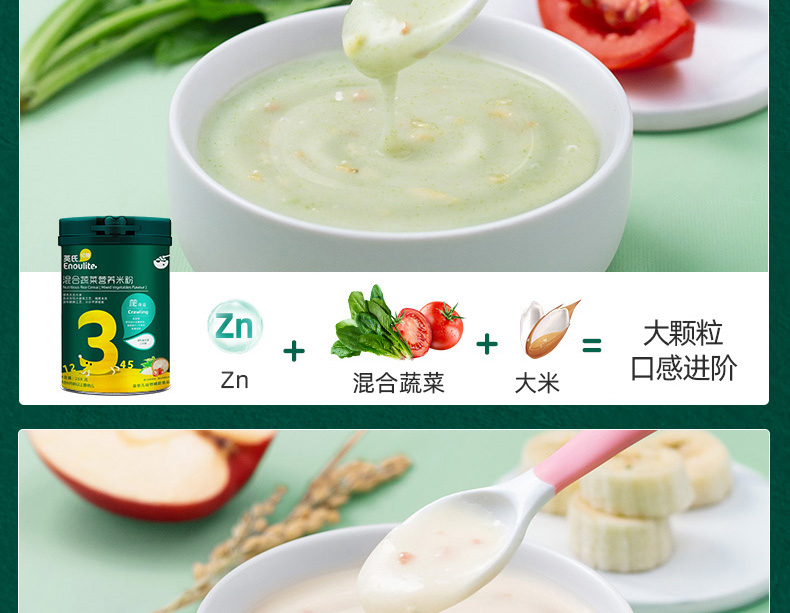 英氏婴儿营养辅食米粉,米粉中不添加多余成分,充分满足宝宝日常所需,维C加铁口感细腻,吸收加倍,全方位守护宝宝健康成长
