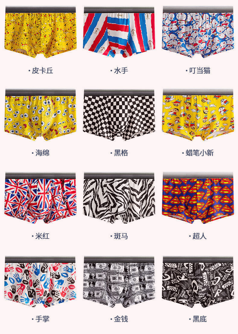 7-28岁男士内裤卡通创意平角,搞笑青少年学生短裤男生舒适四角裤潮