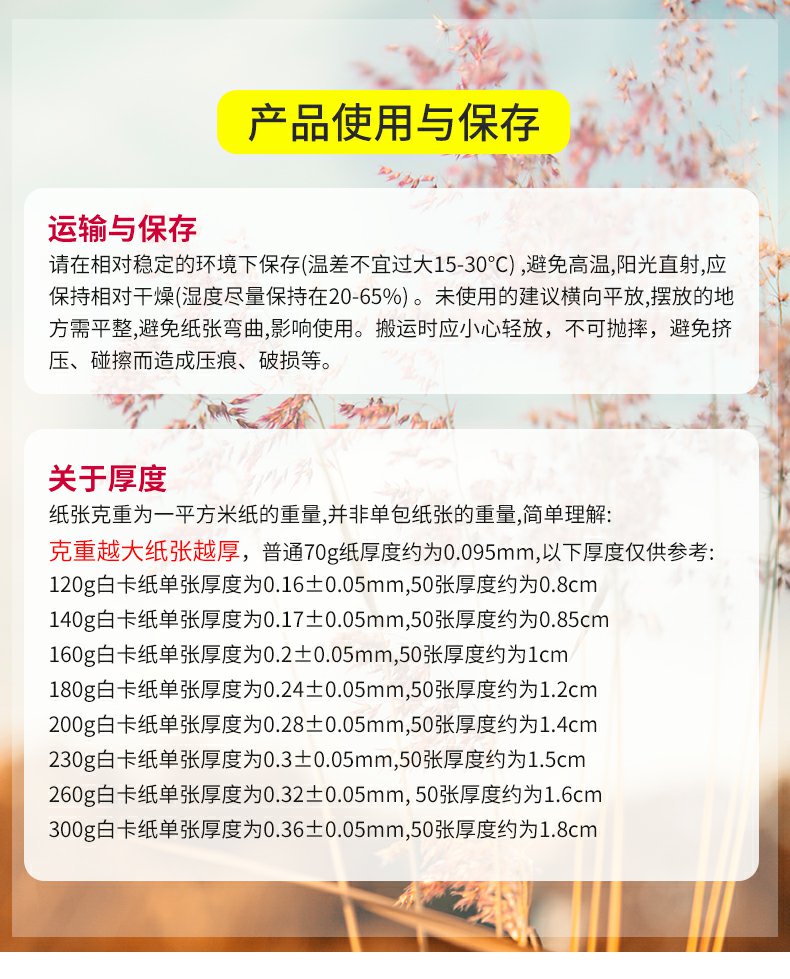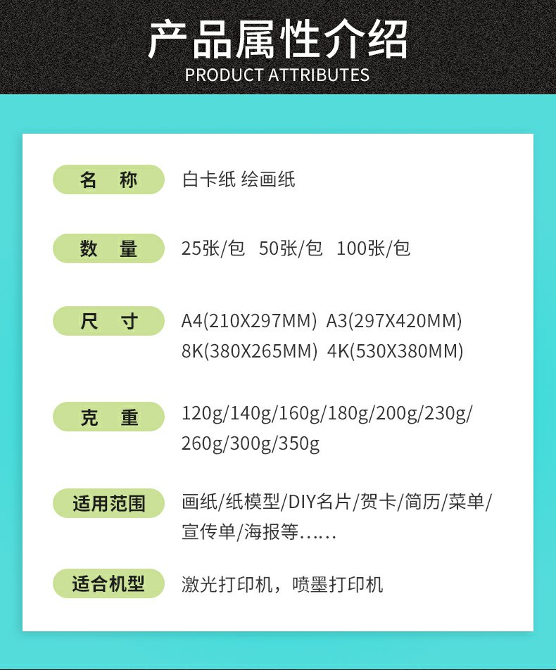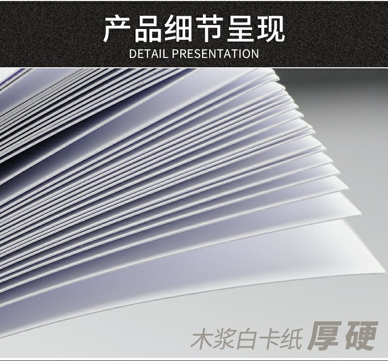 纸张挺度好,复印不卡纸,纸张不透明,可以双面复印,不发黄,不变脆,易粉碎,平整不卷边,幅除静电技术,书写不卡顿。适用于素描,手工,彩绘,印刷,打印~够厚才是硬道理