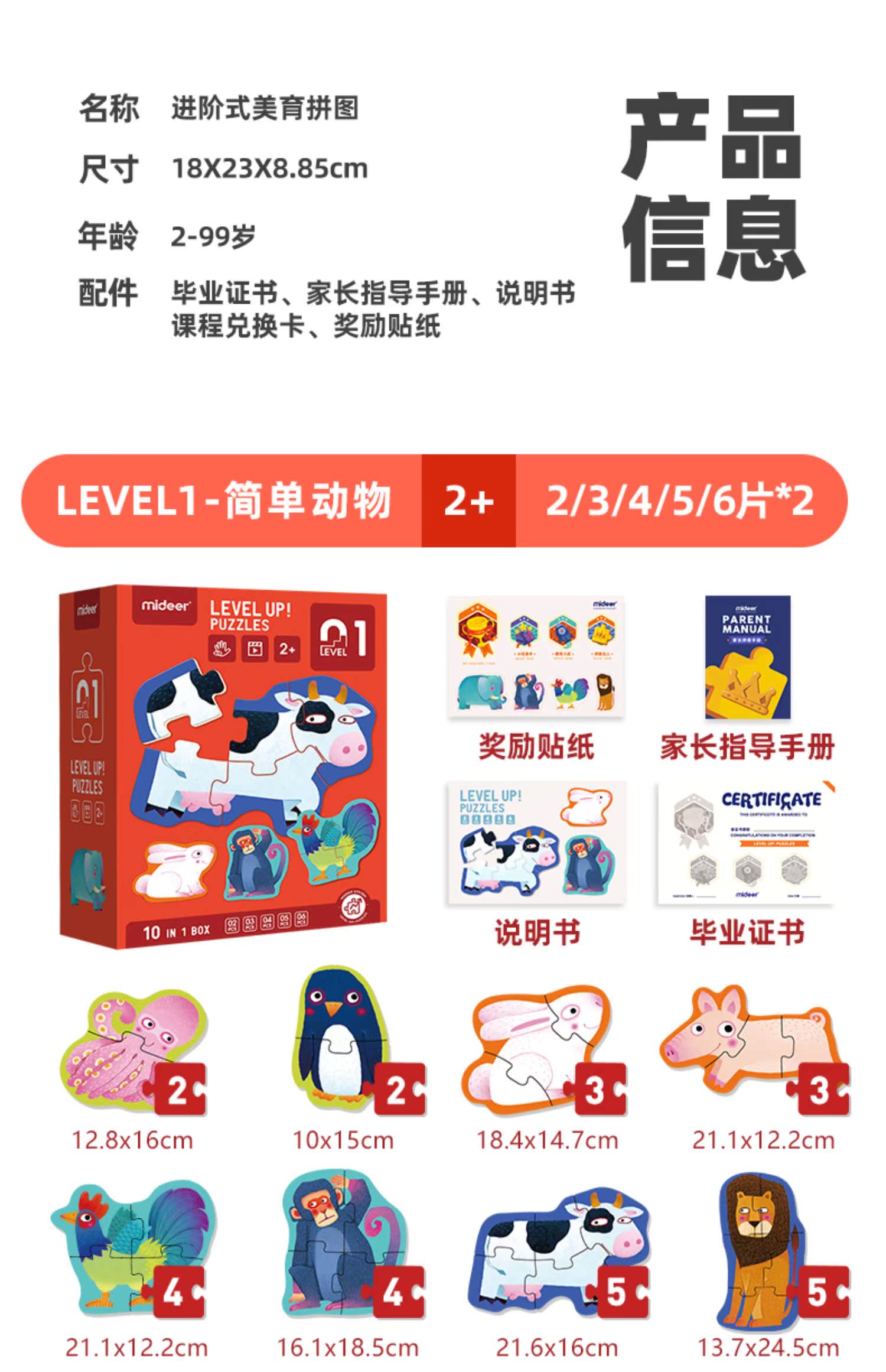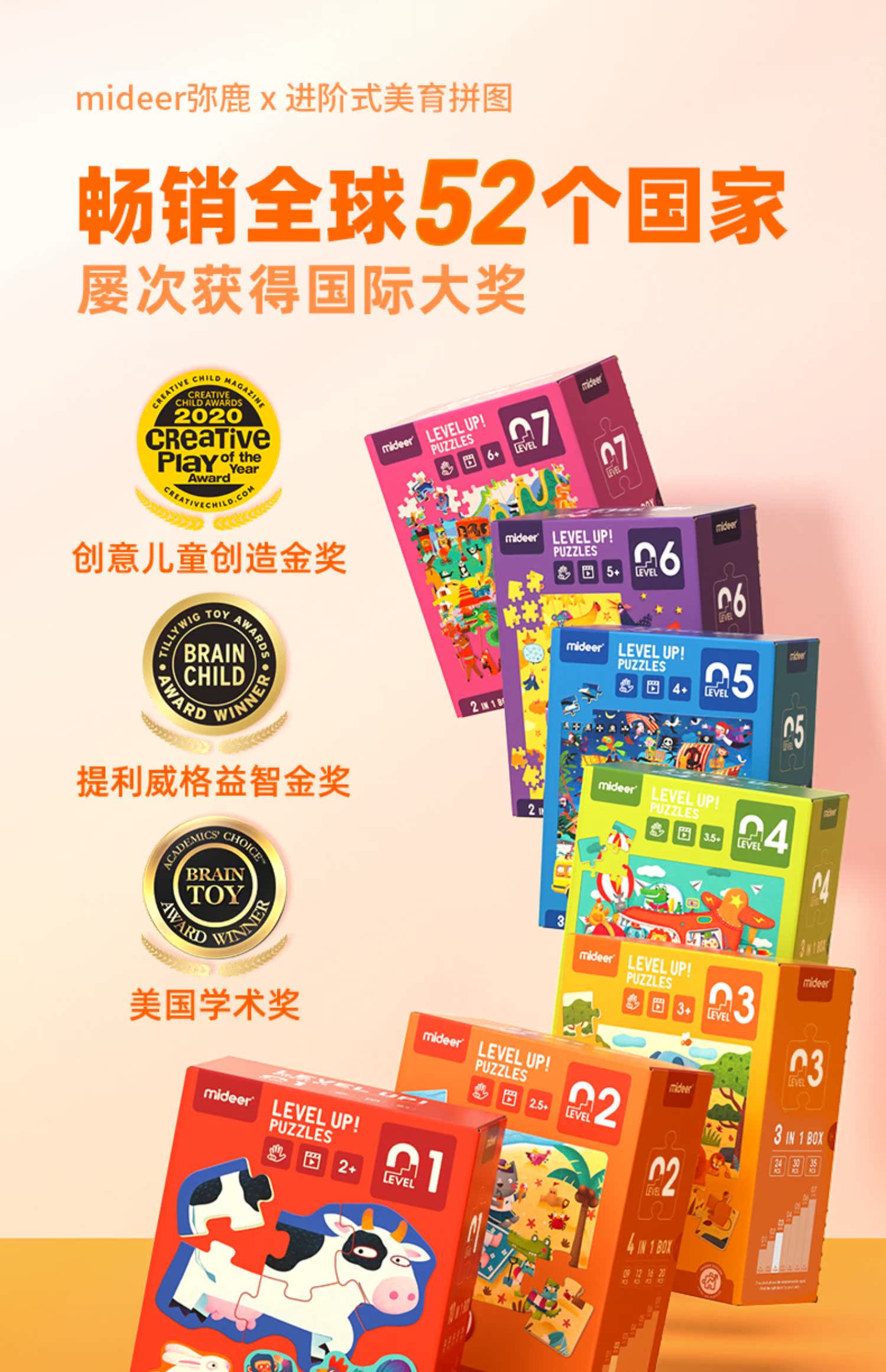 弥鹿进阶式拼图,能拼还能学,中英双语,练口语,渐进式贴合智力发育规律,挖掘大脑潜能,培养逻辑思维能力。开发宝宝智力!