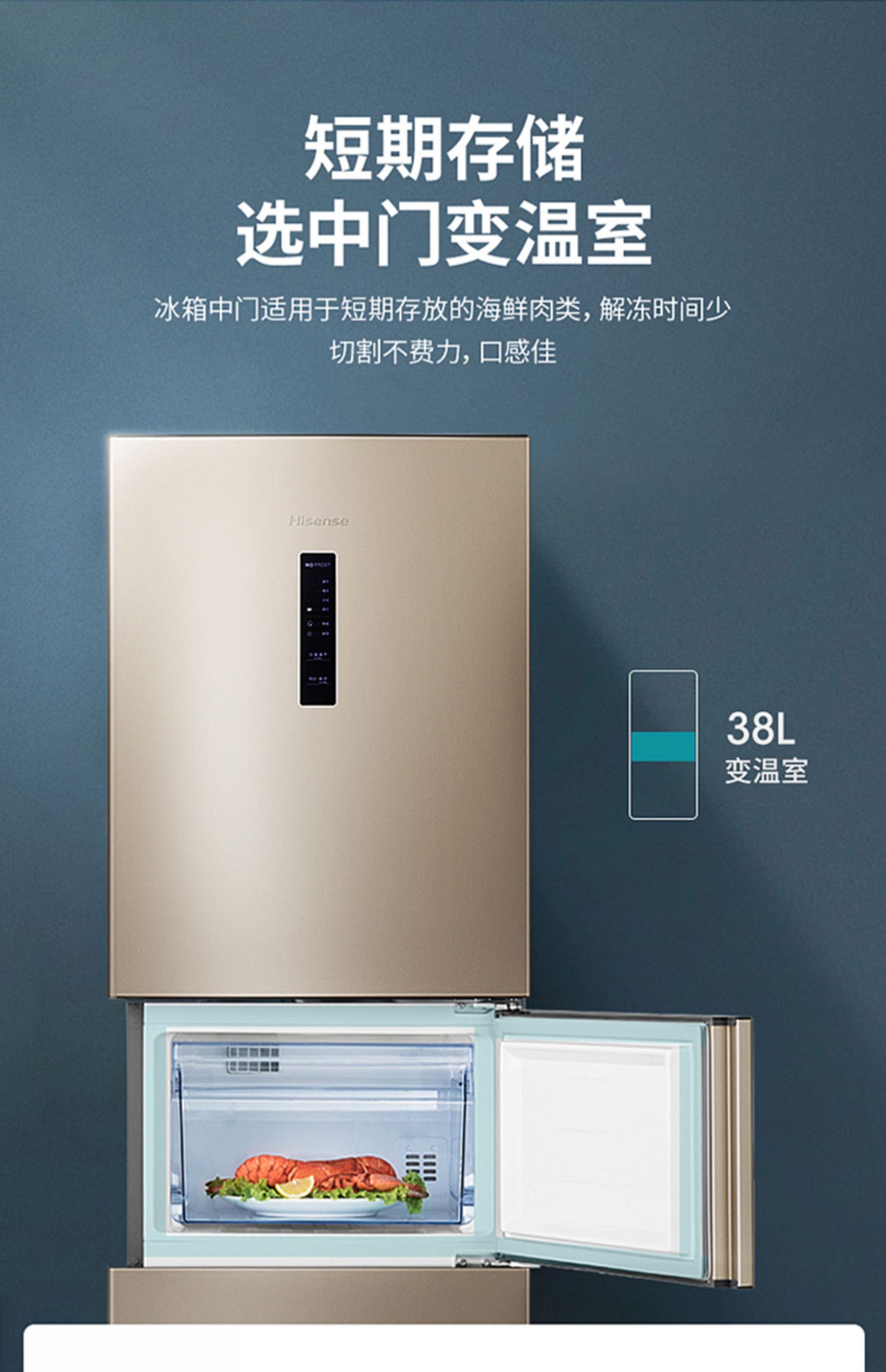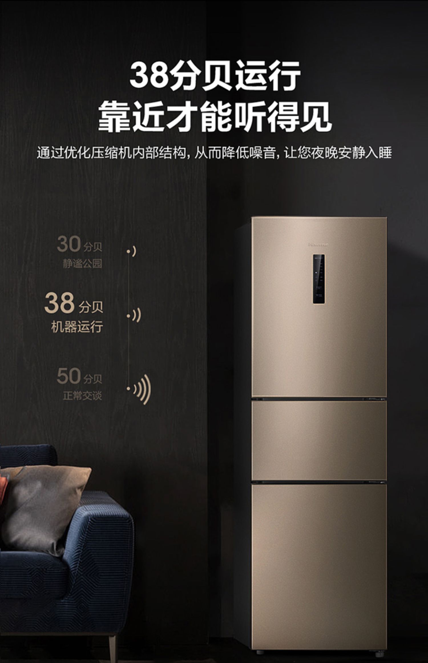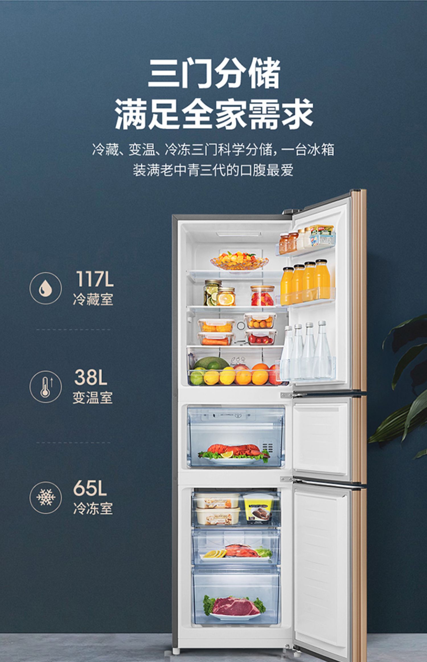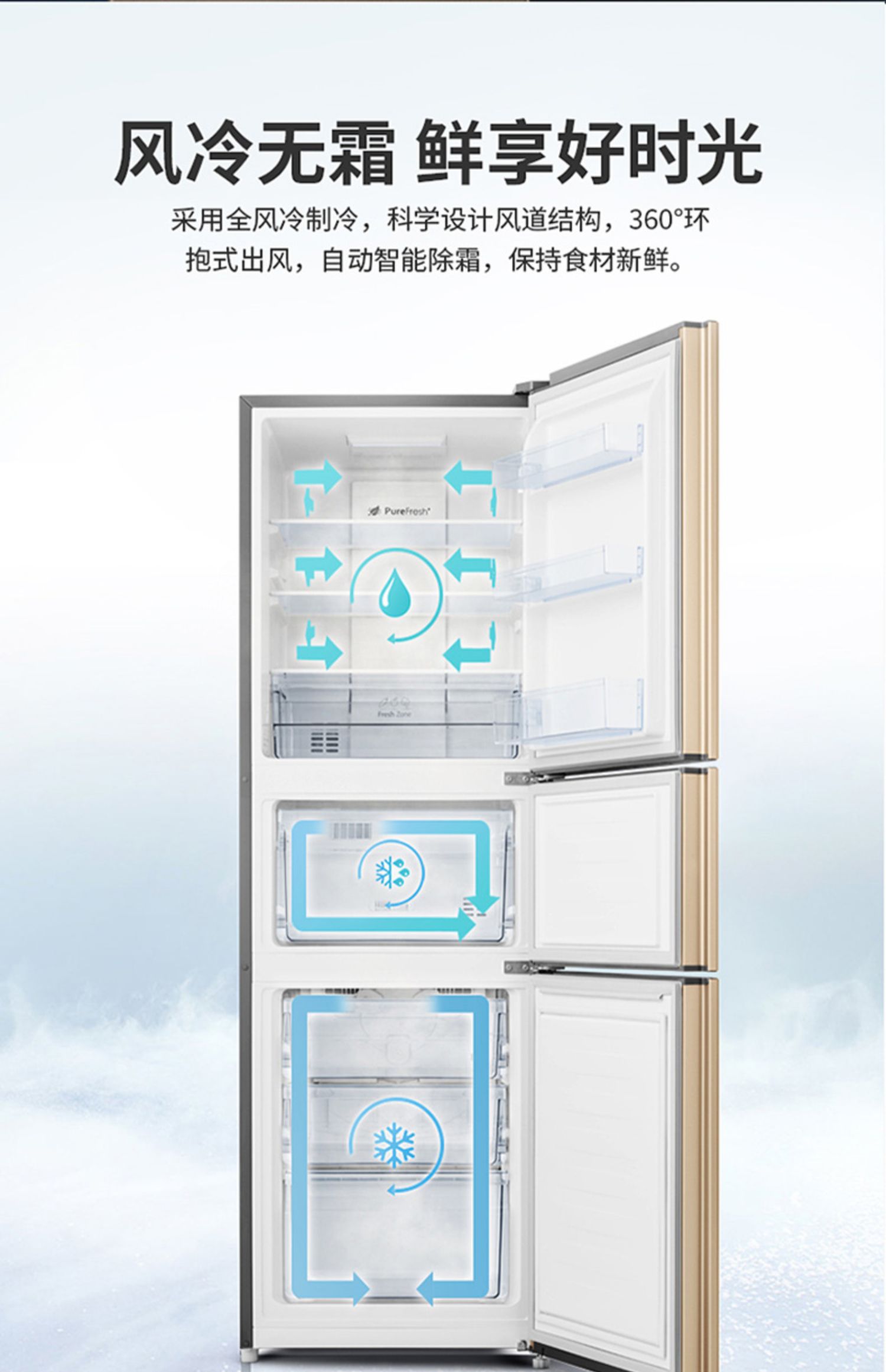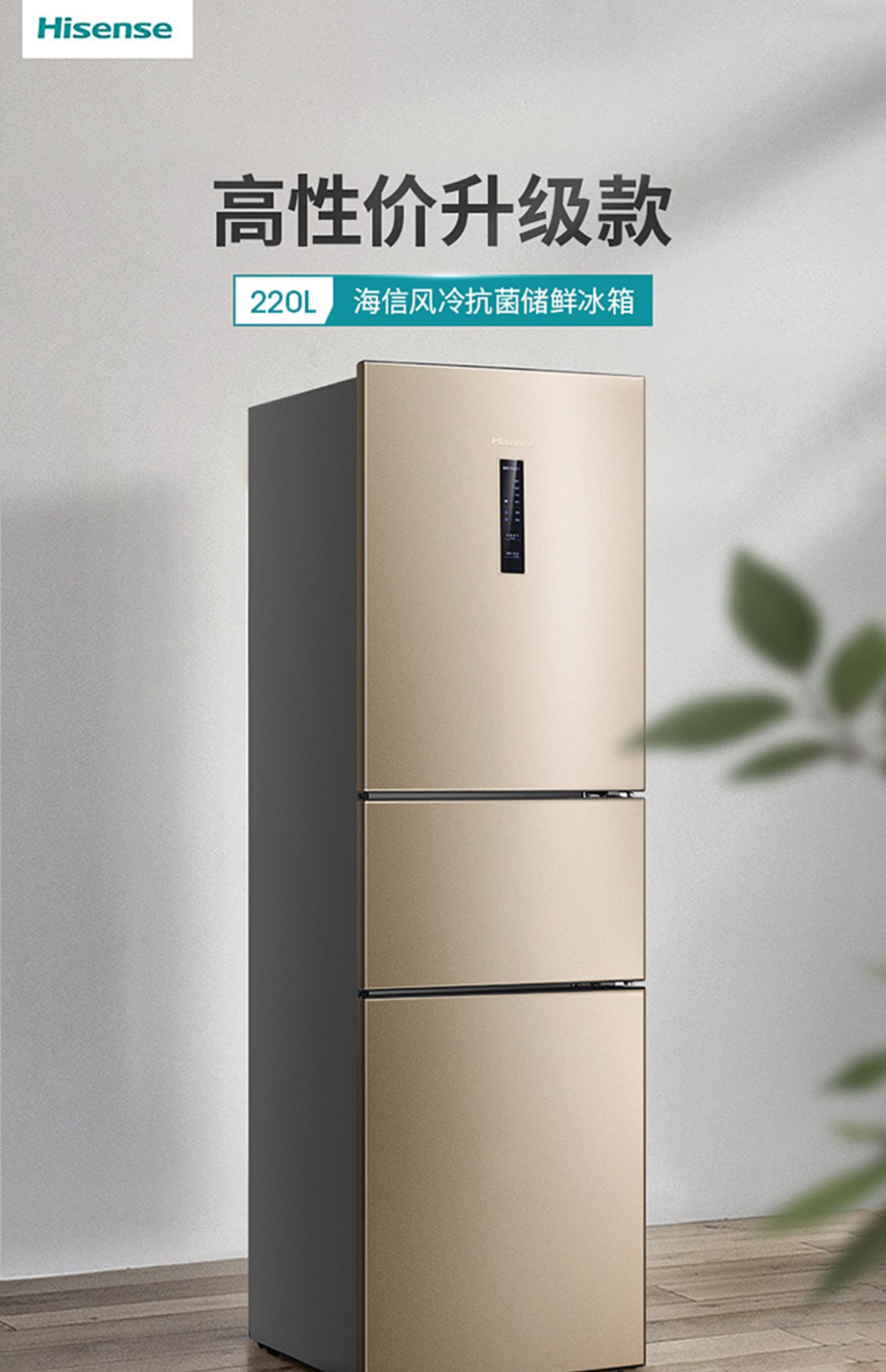 【天猫家装节】海信BCD-220WYK1DQ家用风冷无霜电冰箱~220L超大容量~幻彩金纤薄机身省地不占空间~3门分储,满足全家需求,抗菌保鲜~二级能效~省心不止一点~官方直营店~正品保障~