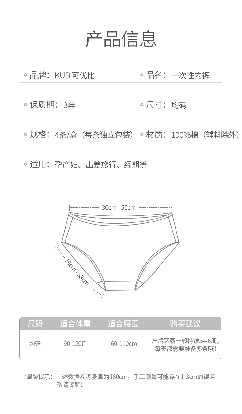 【第2件7.5折】采用棉柔面料,清爽透气贴身,持久不闷热;高弹腰筋,舒适无勒痕;独立包装不含荧光剂;产妇月子用,旅游出行必备,让生活回归简单而有趣!
