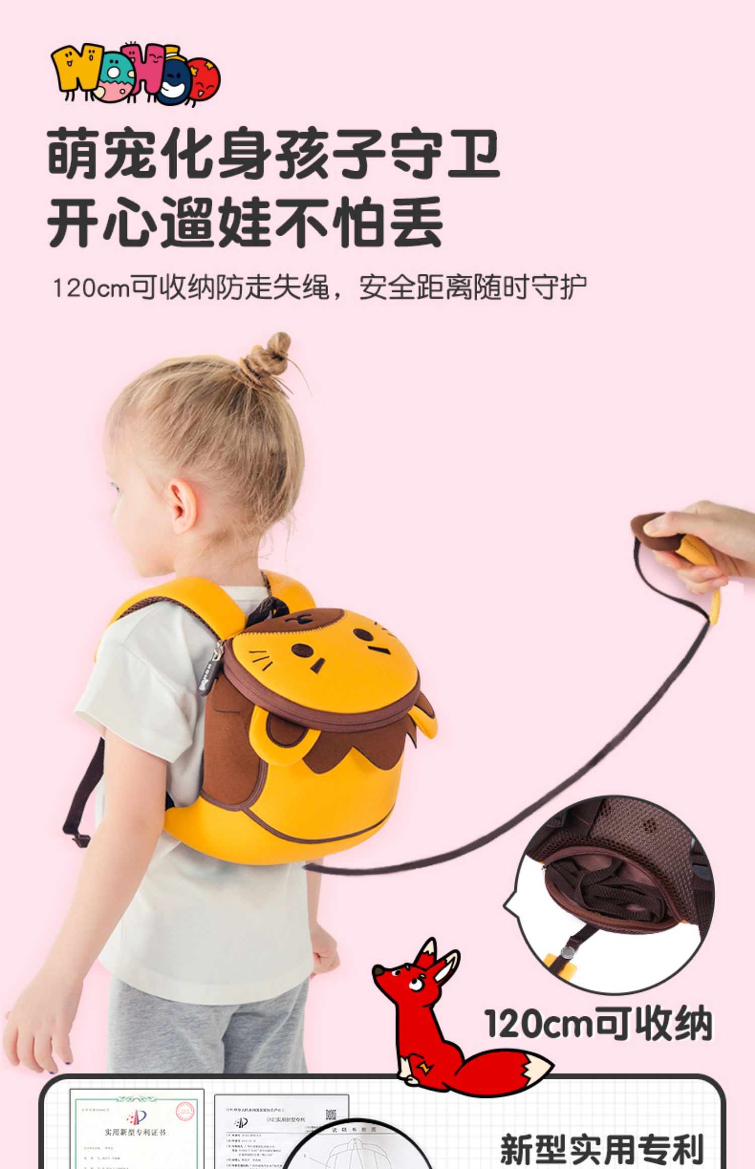 幼儿防走失背包,原创设计,轻盈,放走失专利。全背式透气,防泼水面料。