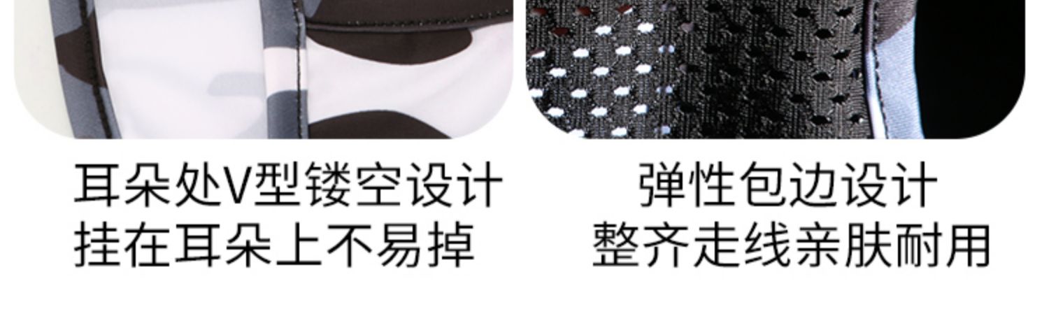 冰丝运动面料,冰爽触感,透气网,防晒透气两不误,挂耳设计固定不脱落,加长护脖360度防晒,炎炎夏日,值得拥有!