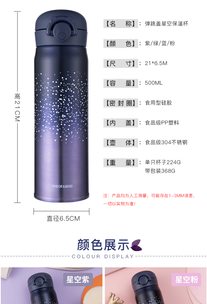 4.9高评分!赔钱出量,今日下单立减45元!它美的无与伦比,有它的日子夜夜温暖。304不锈刚,弹跳盖锁扣,长效保温,224G轻身杯体,500ml超大容量,多色可选。