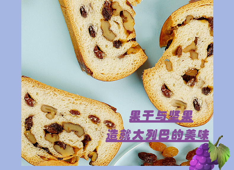 【俄罗斯大列巴全麦面包500g】帕芙琳台湾知名糕点品牌!现烤现卖,健康无添加,提子核桃味,坚果占比百分之33,麦香浓郁,口感纯真,营养丰富,好吃不长胖,鲜奶面包,不加一滴水,营养早餐好选择!