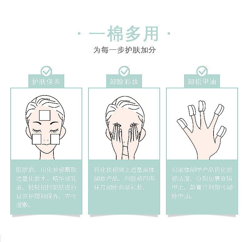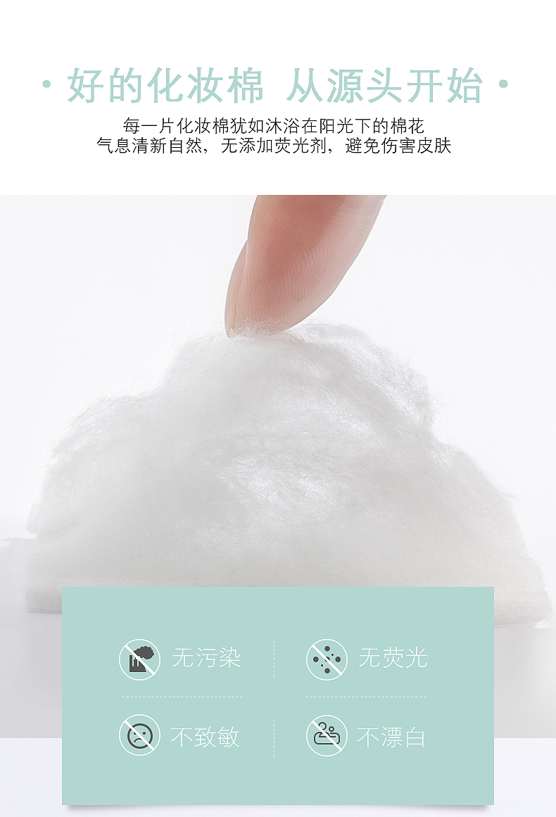 细腻柔韧,天然纯净,无添加荧光剂,避免伤害皮肤,好肌肤,需要一款有品质的化妆棉,携带方便。