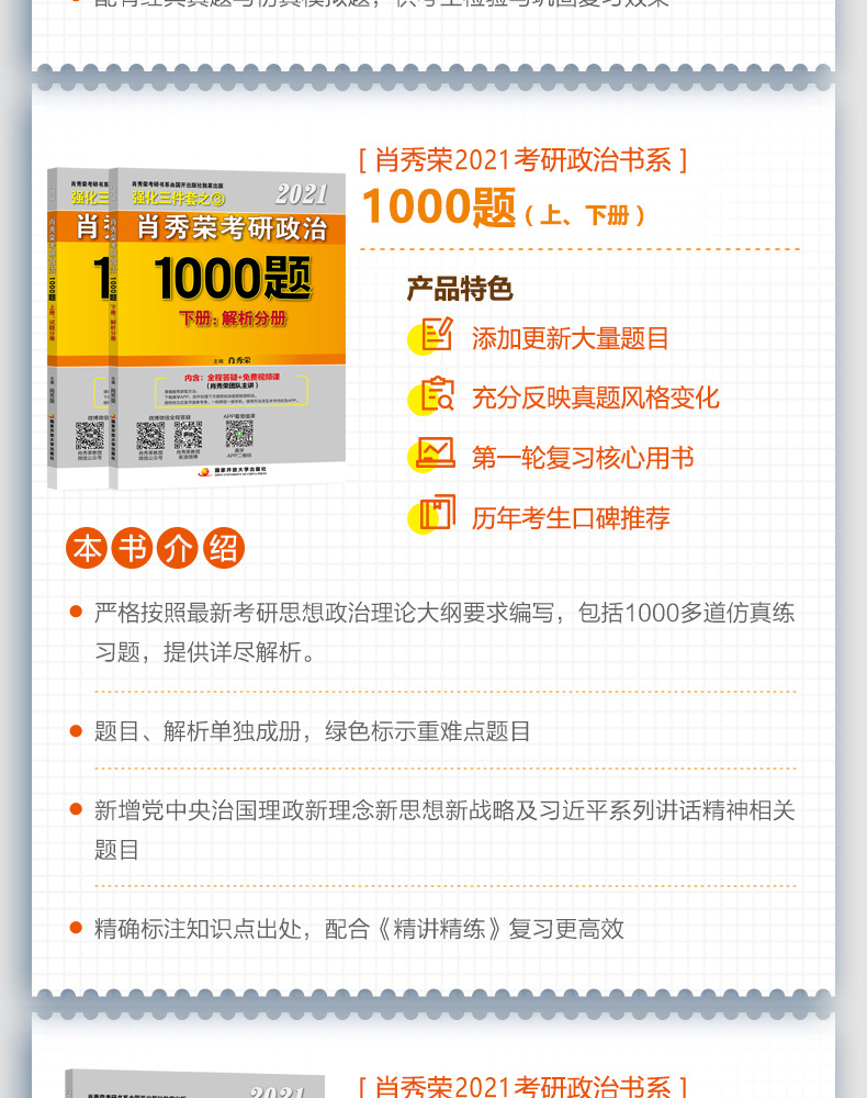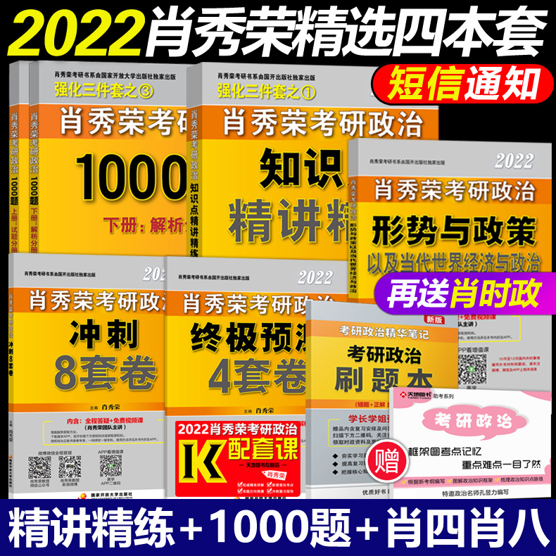 【官方店】肖秀荣微博置顶推荐,2022考研政治肖秀荣精品五本套。1000题+知识点精讲精练+肖四肖八+形势与政策。赠思维导图+刷题本,结构清晰,重点突出,结合真题及模拟题演练。人手一册的押宝试题。