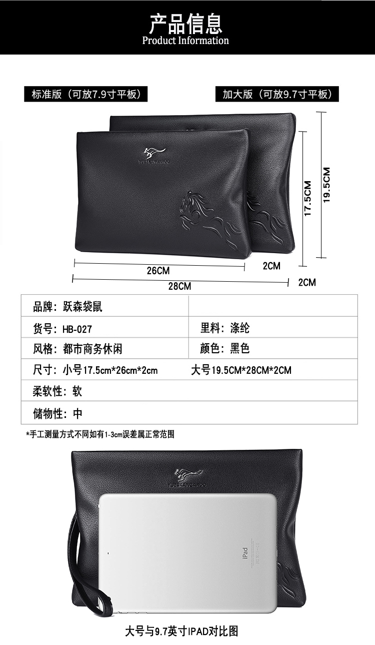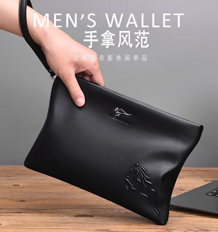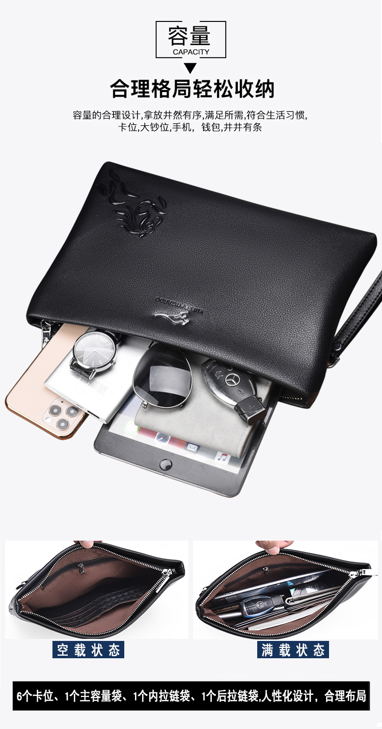 真皮休闲大容量手拿包,商务牛皮手抓包,男信封包,优选牛皮面料,质地柔滑坚韧,纹理细腻有光泽,具有防水耐磨特性。【赠送运费险】
