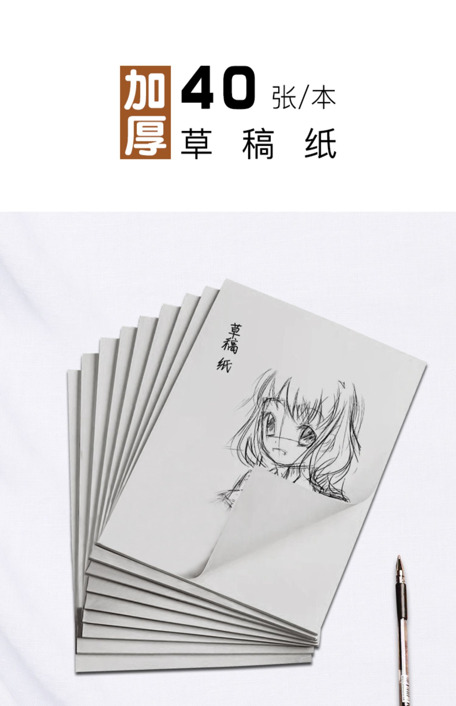 【送3支笔】美术画画考研专用加厚草稿纸!优质原浆纸,加厚护眼,双面书写绘画不透墨。米黄色纸张保护眼睛,纸质非常好,关键好用还便宜,趁现在赶紧囤起来!!
