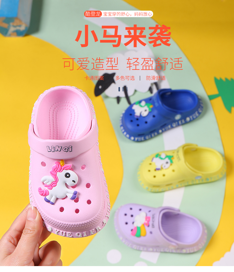 小马图案,舒适Q弹宝宝洞洞鞋,无异味放心穿,鞋头上翘15°,行走更贴合脚步,久穿不变形,优选EVA健康材质,凹凸纹理防滑设计,陪伴宝宝清凉一夏,物美价廉,放心购买!