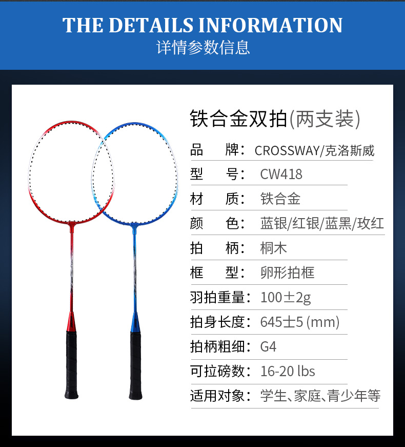 CROSSWAY/克洛斯威正品超钢性耐打羽毛球双拍,送2个羽毛球+1个拍包,控球准,手感舒适,耐用耐打,初学者热荐款,您值得拥有!【赠运费险】