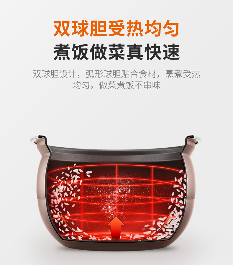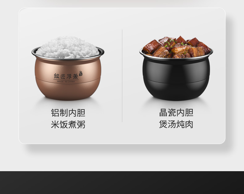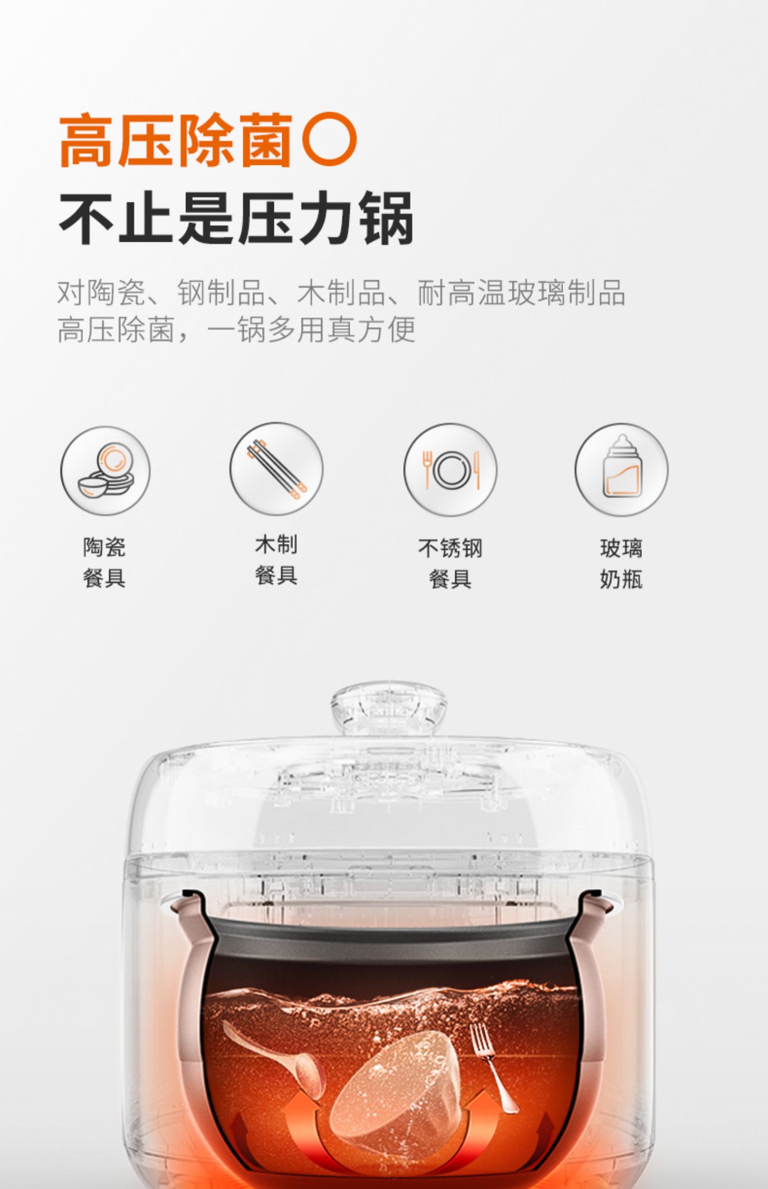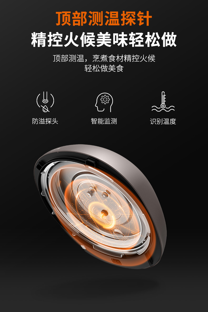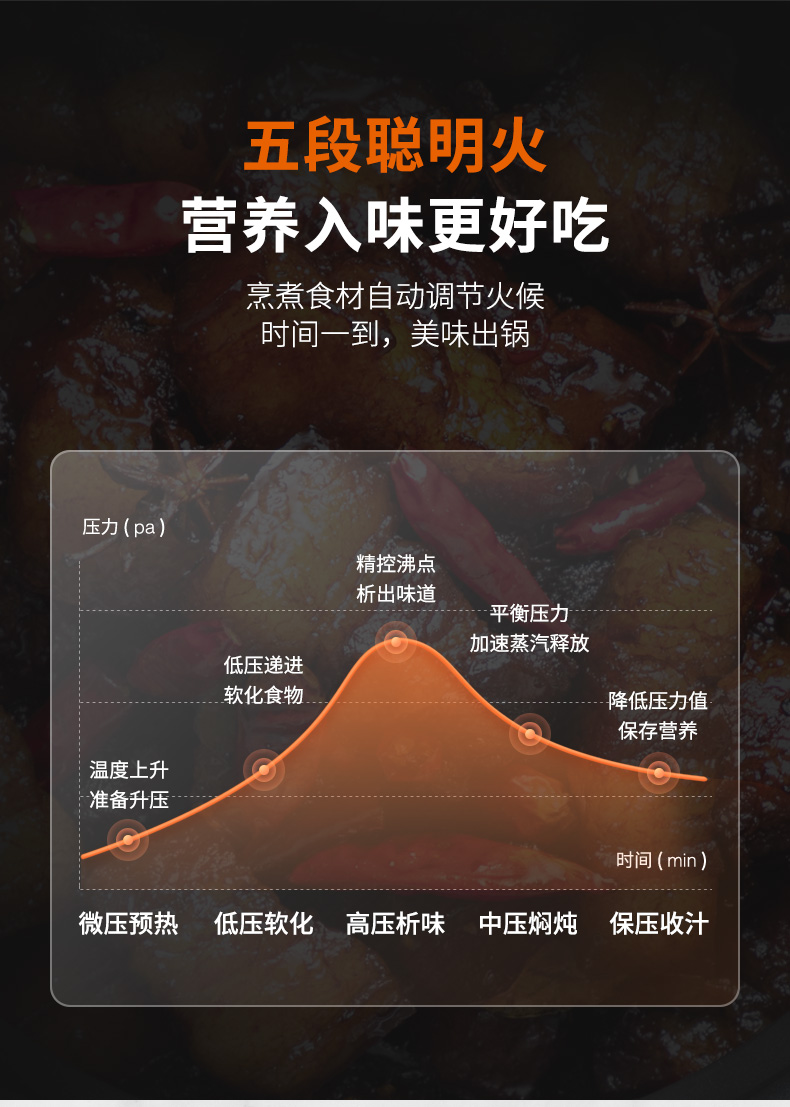 球釜双胆,九阳6L大容量电压力锅,时尚方煲造型,一机双胆,多重安全防护,智能界面操控,24H智能预约,10大功能菜单,更有轻养云食谱,智能实时菜单,美味轻松选择,煲煮炖闷吃你想吃的