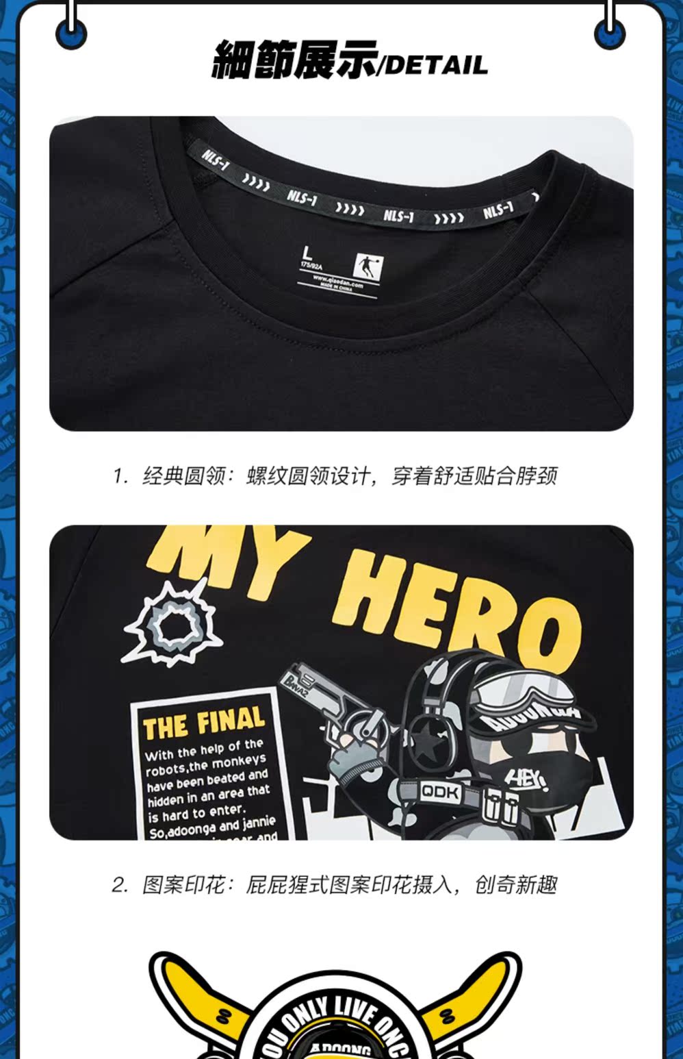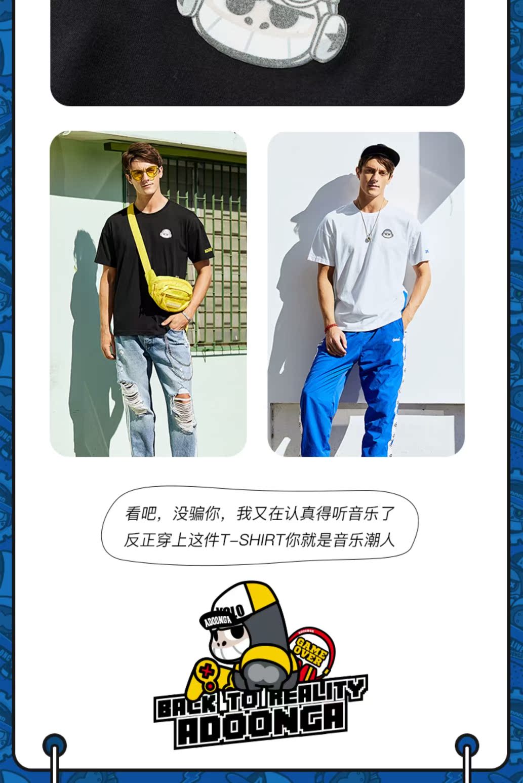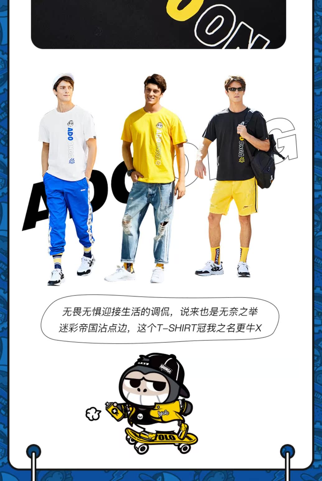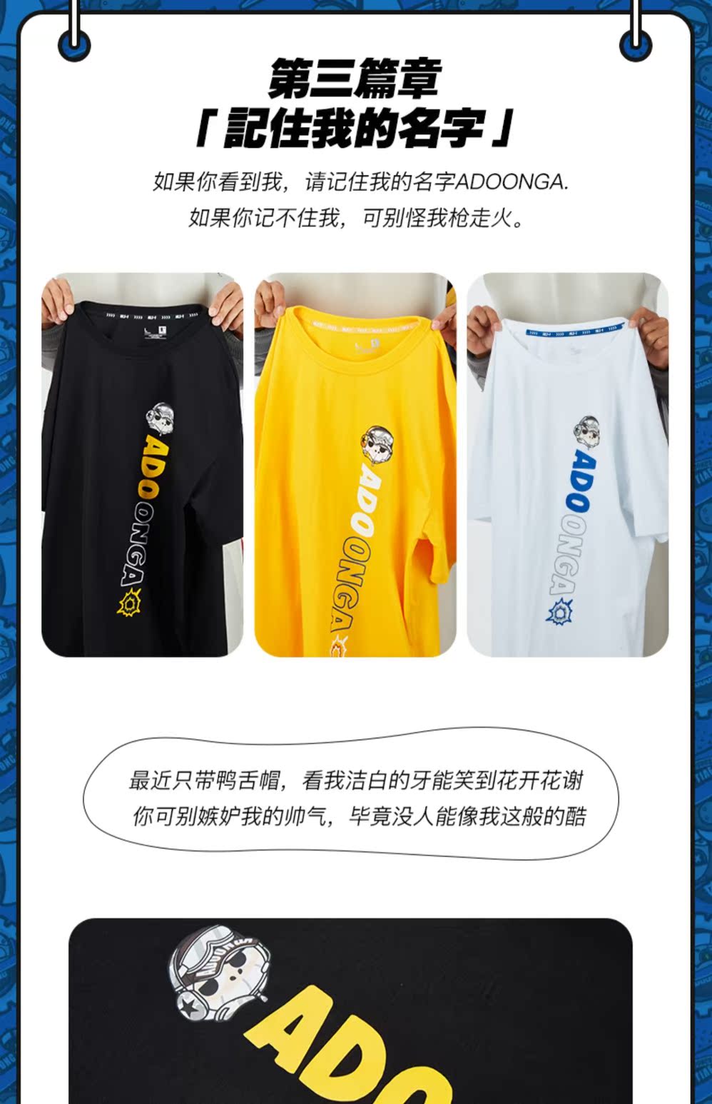 【乔丹正品,ADOONGA联名】2021夏季新品休闲潮流T恤男,选用高品质棉,亲肤柔软透气,舒适弹力不易变形,趣味印花图案,减龄又富有活力,简约又百搭,怎么穿怎么帅气【赠送运费险】