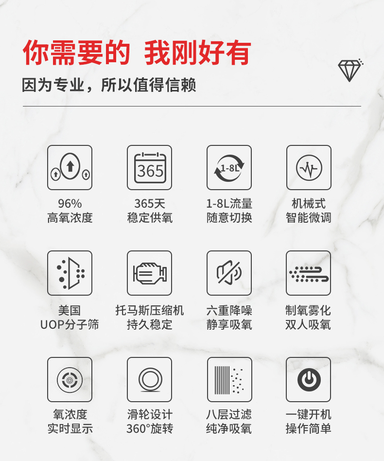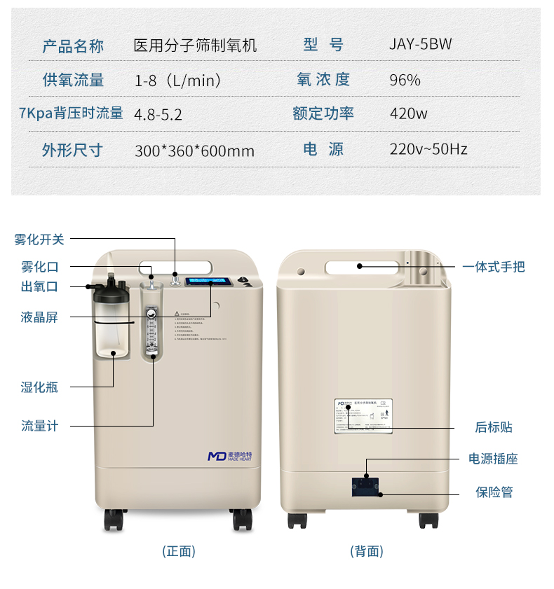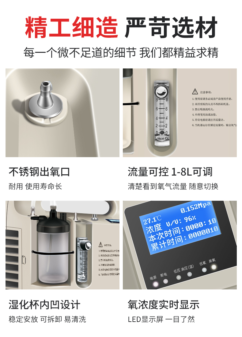 【官方自营安心售后,下单赠豪礼】精工细造,严苛选材,不锈钢出氧口,流量可控1-8L可调,湿化杯内凹设计,LED显示屏一目了然。