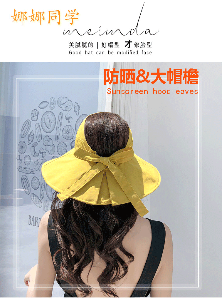 网红空顶渔夫帽背后的蝴蝶结设置少女感十足空顶设计透气舒适加大帽檐防晒防紫外线,出品高品质集实用+美丽一体帽内防风防掉设计随意折叠不变形方便携带多种颜色可选!贵点买顶好的【赠运费险】