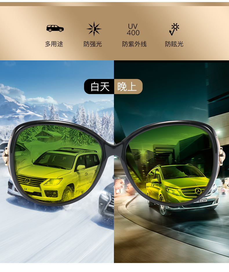 昼夜两用偏光驾驶镜,重塑潮流,时尚,采用质量更好的树脂镜片,将各种刺眼的炫目光过滤,从而提高视觉质量,让景物看起来清晰不刺眼。【运费险赠】