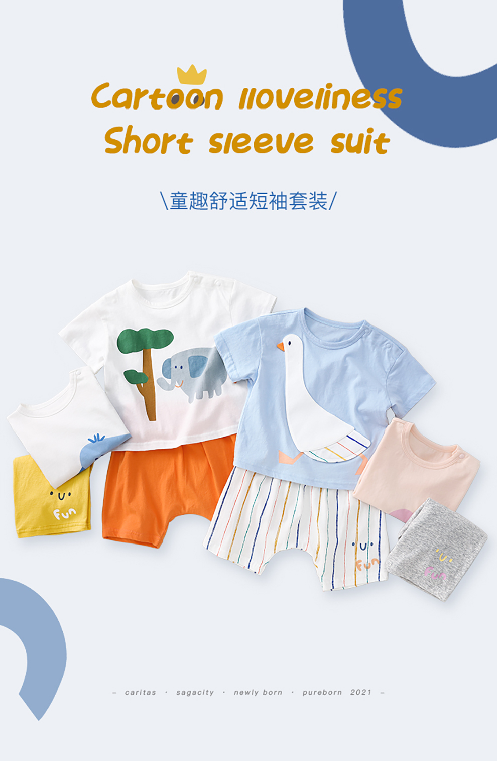 博睿恩品牌婴幼儿纯棉短袖套装,全尺码统统一个价,纯棉A类面料,柔软舒适,轻薄透气,精致锁边工艺,结实耐穿,潮流百搭,清新固色印染,品质安心,天热了,宝妈速度囤货!【赠运费险】