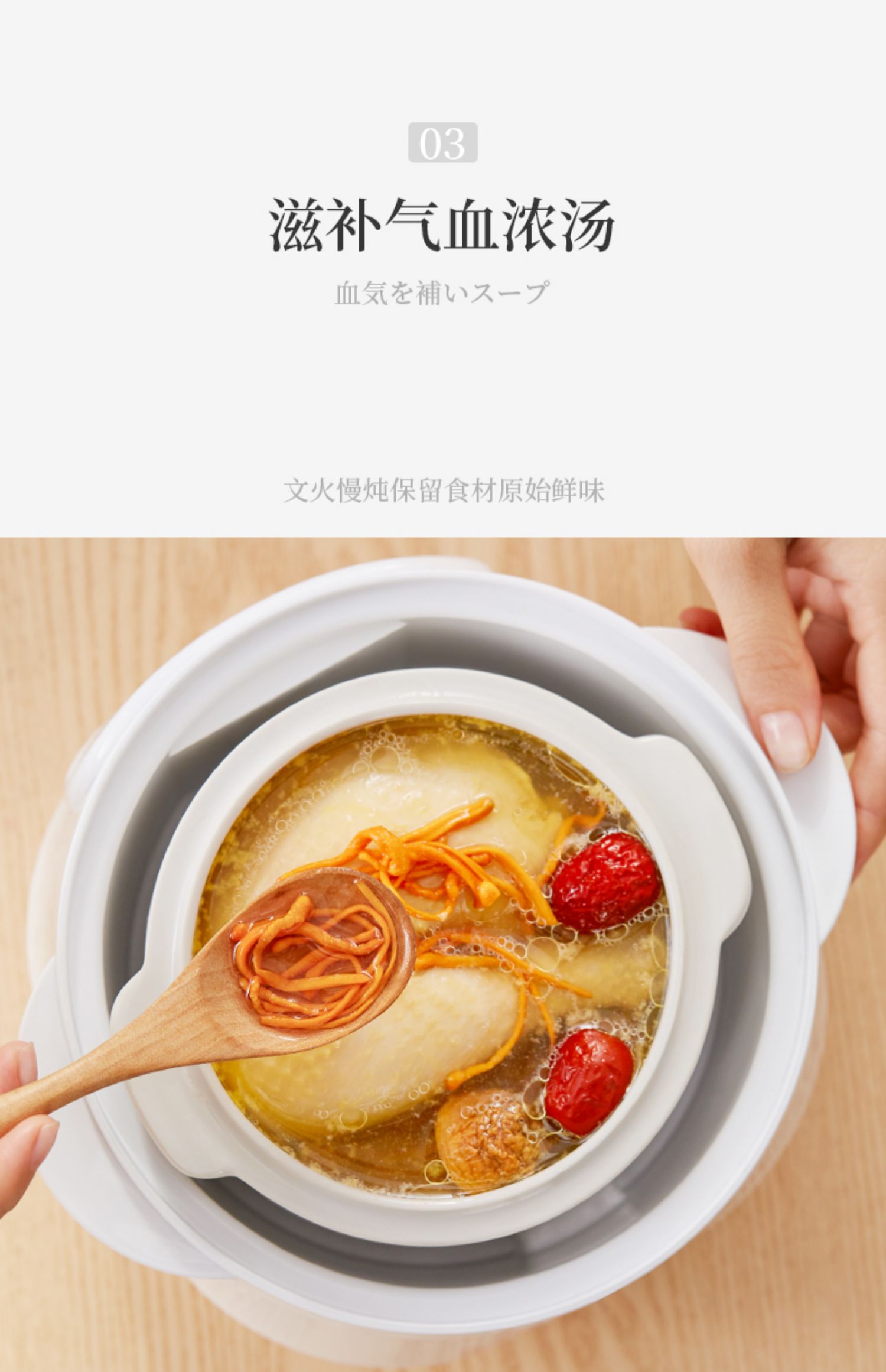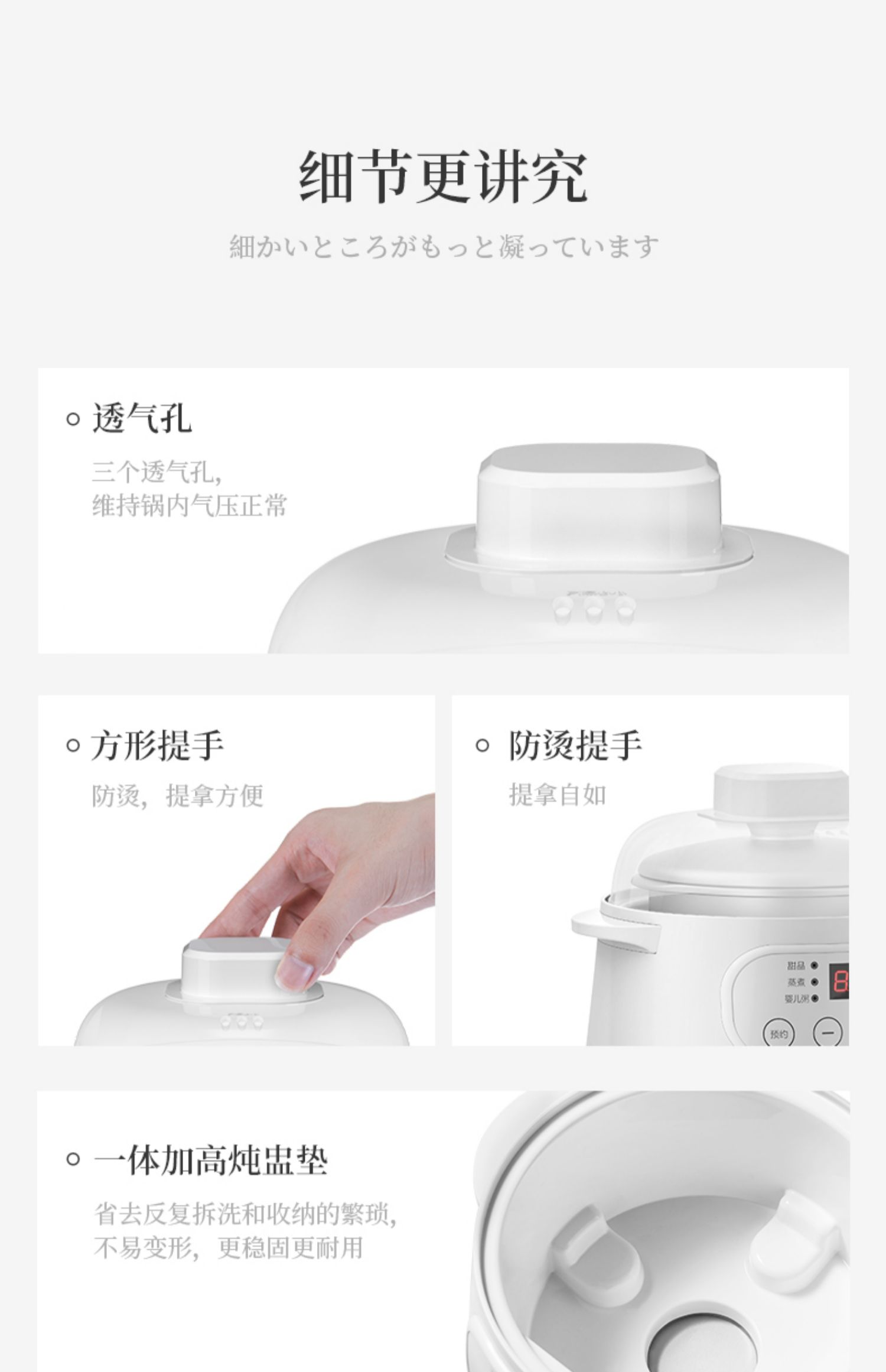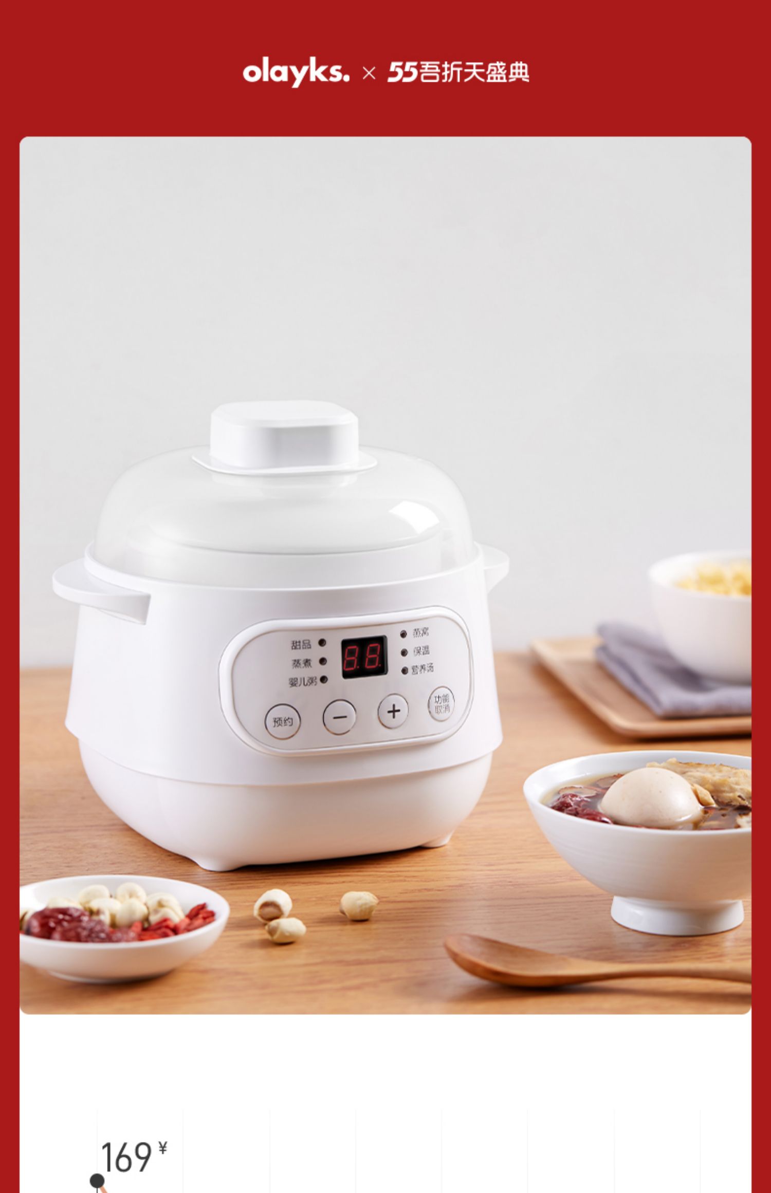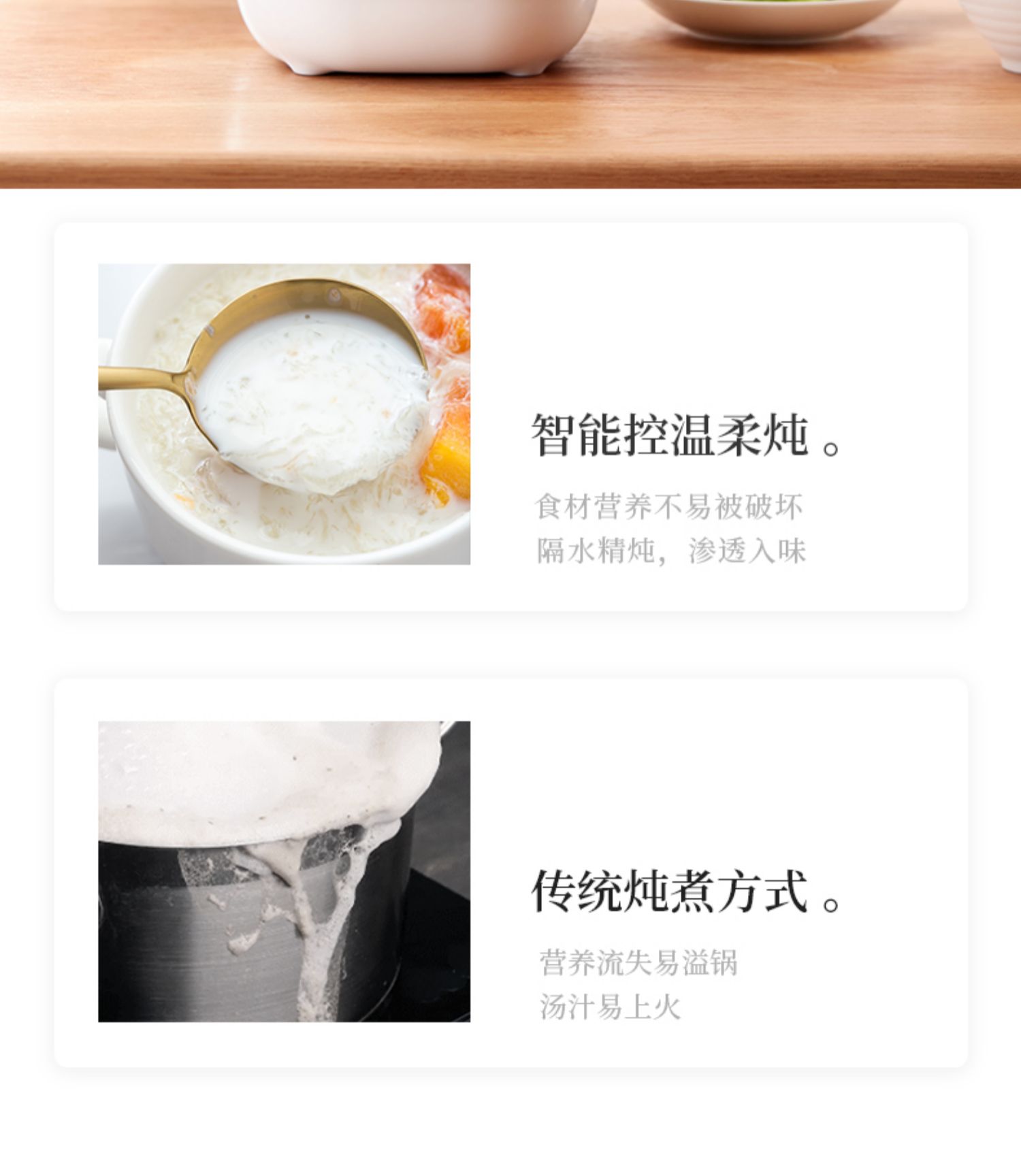 全自动电炖陶瓷锅,精选陶瓷内胆,3C质量认证,全国联保,温火细熬,安心不溢锅,静音运作,隔水慢炖,6大预设预约功能,打开生活便捷方式~