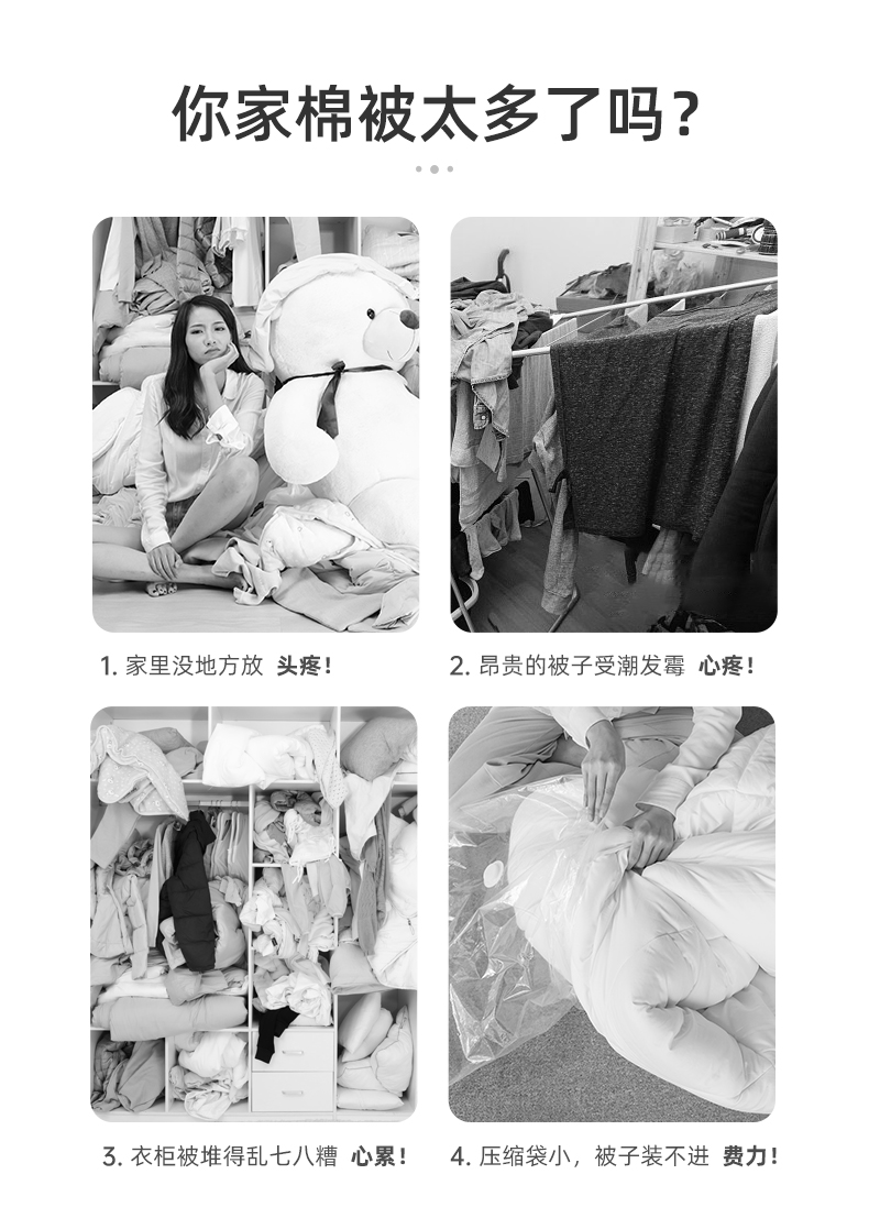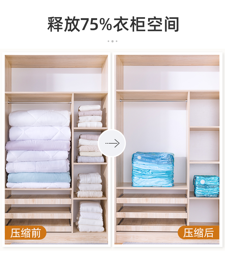 多种组合可选,容量超大,可收纳96斤厚冬被!专利免抽气,按压排气,3秒速排,释放75%空间,防潮防霉防褶皱,单面透明,查找衣物一目了然,航空品质,居家必备!【赠运费险】