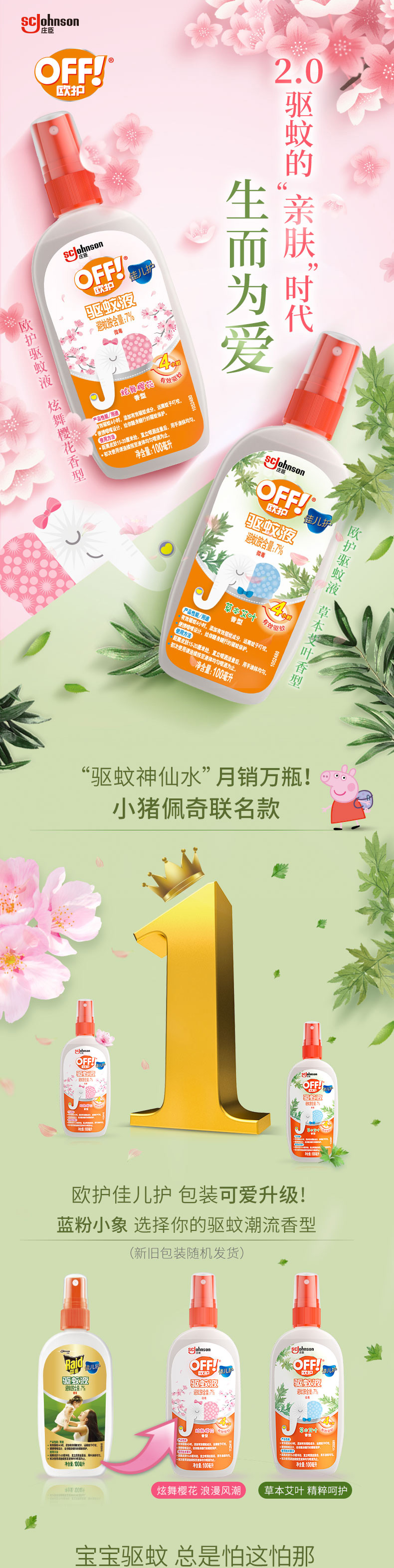 【返15猫卡,到手19.9元,以订单为准!】欧护佳儿护驱蚊液,(草本艾叶+炫舞樱花)双包装,持续4小时有效驱蚊,轻便随身,喷洒自如。