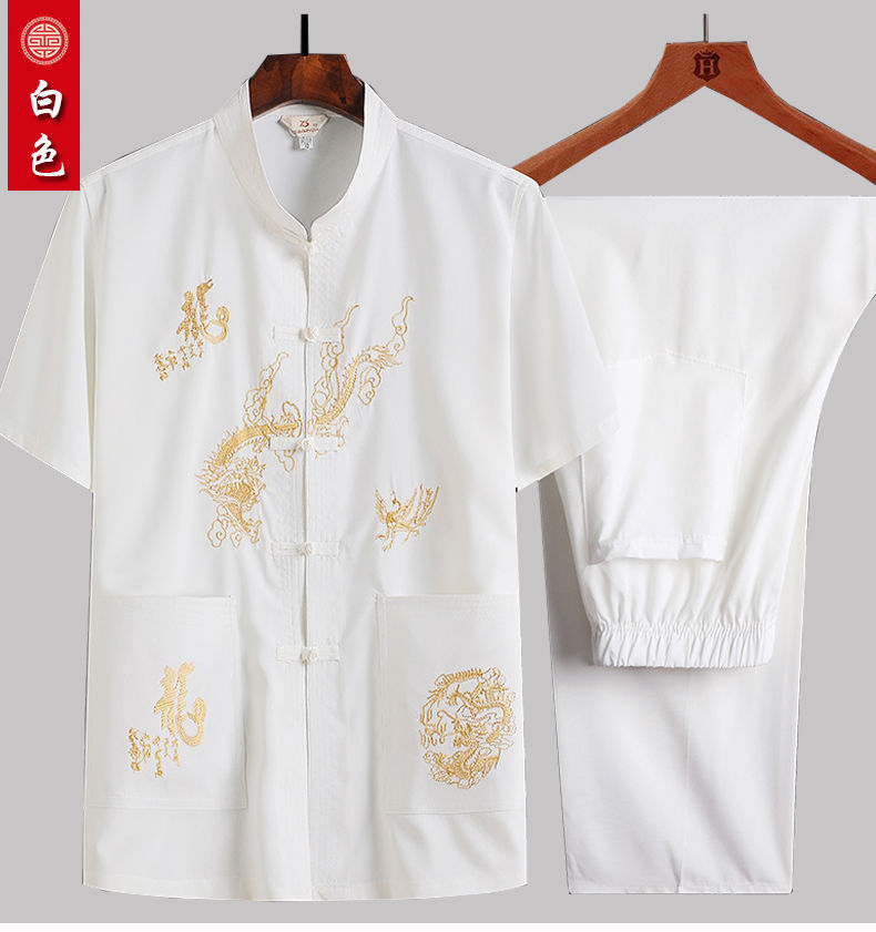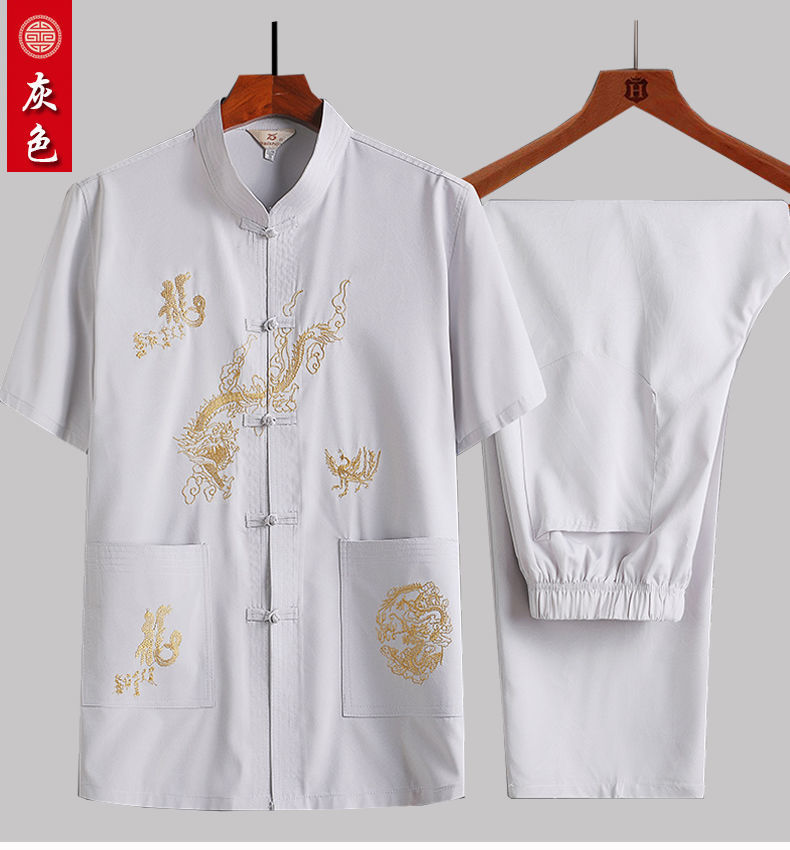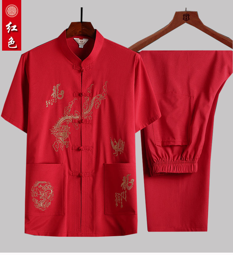 男士夏季唐装套装,中老年人短袖衬衫长裤,刺绣爸爸大码晨练服,爷爷汉服衣服,做工精良,手感柔和细腻,品质保证,多款多色【送运费险】