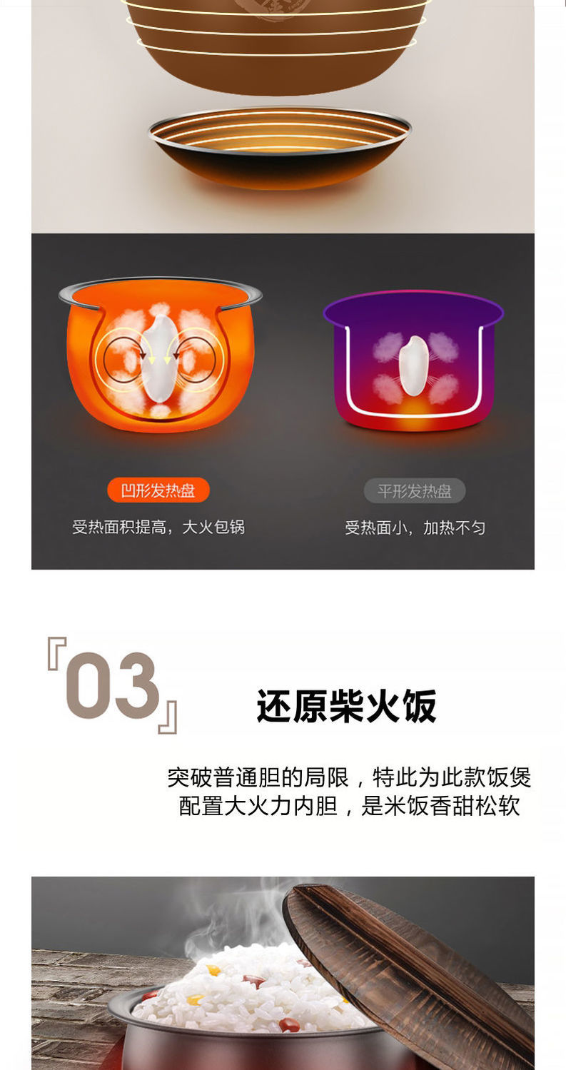 超高性价比,大火力沸腾,智能预约,精煮细焖,匠铜厚釜,智能感温,智能火候,智能烹饪,沸腾防溢,强效聚能,米饭快熟,蓬松饱满,只为还原柴火饭滋味
