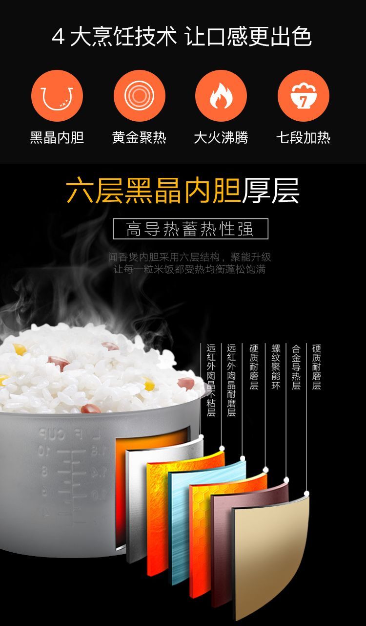 电饭煲,大火包锅,米饭粒粒晶莹柔软,百孔沥糖,沥走糖分,留住饭香,蒸汽恒温闷熟,易饱腹口感好!