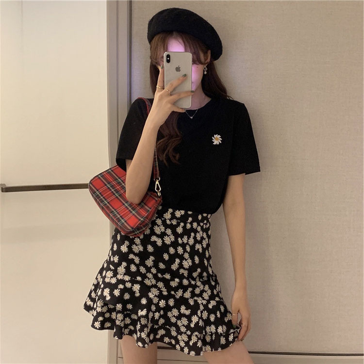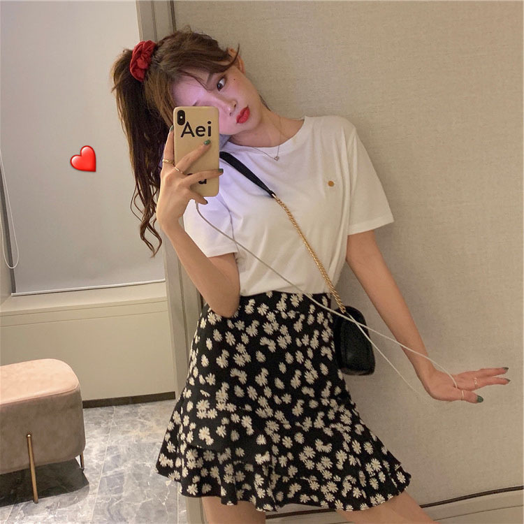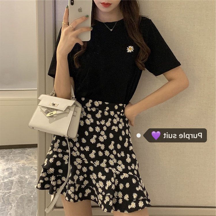 夏季新款大码女装减龄短袖T恤短裙子两件套
